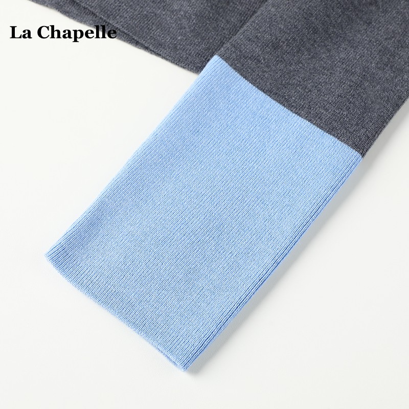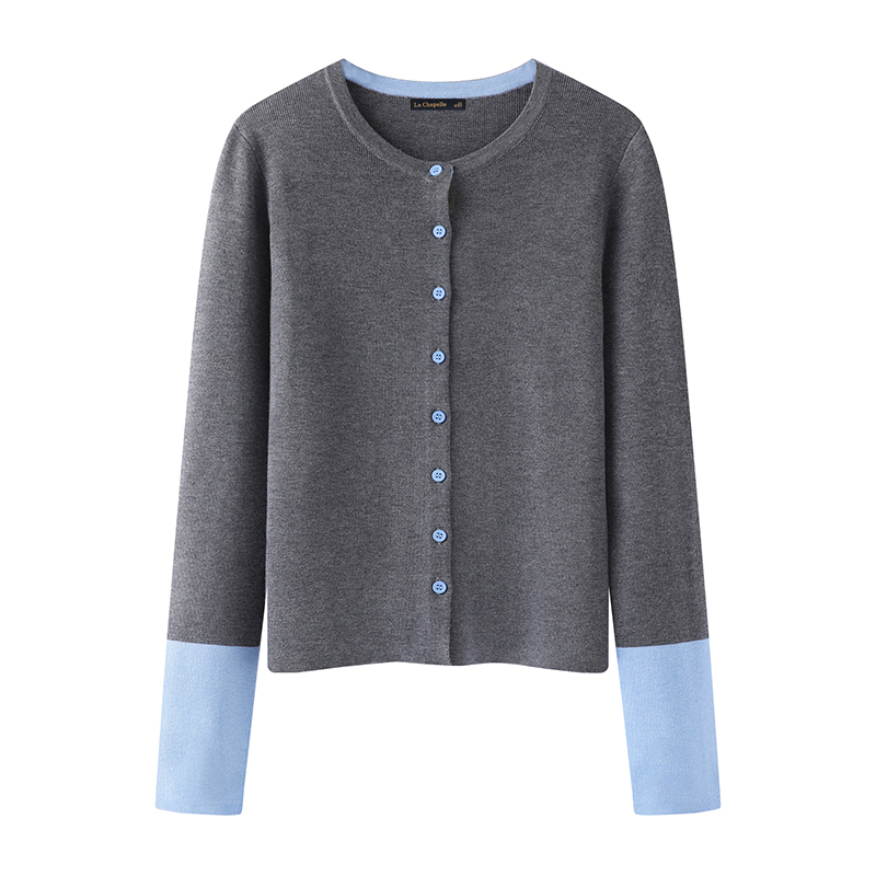 拉夏贝尔/La Chapelle春季新款撞色圆领针织开衫女修身打底衫上衣