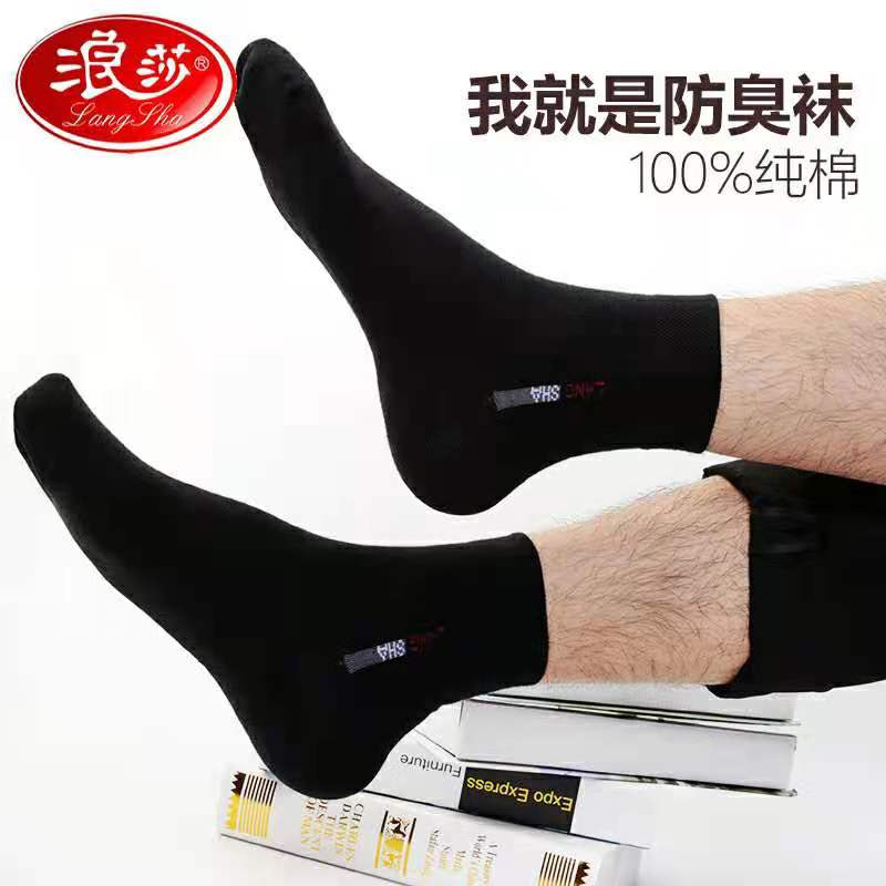 浪莎袜子男士纯棉中筒吸汗透气春秋全棉四季中厚纯色简约商务男袜