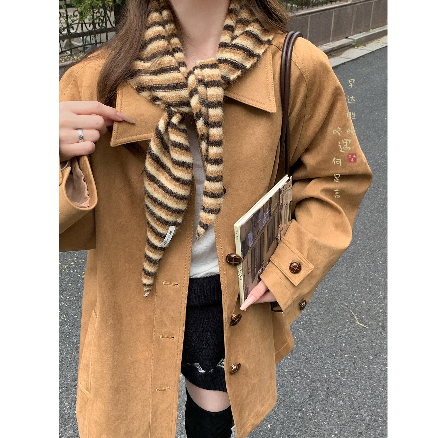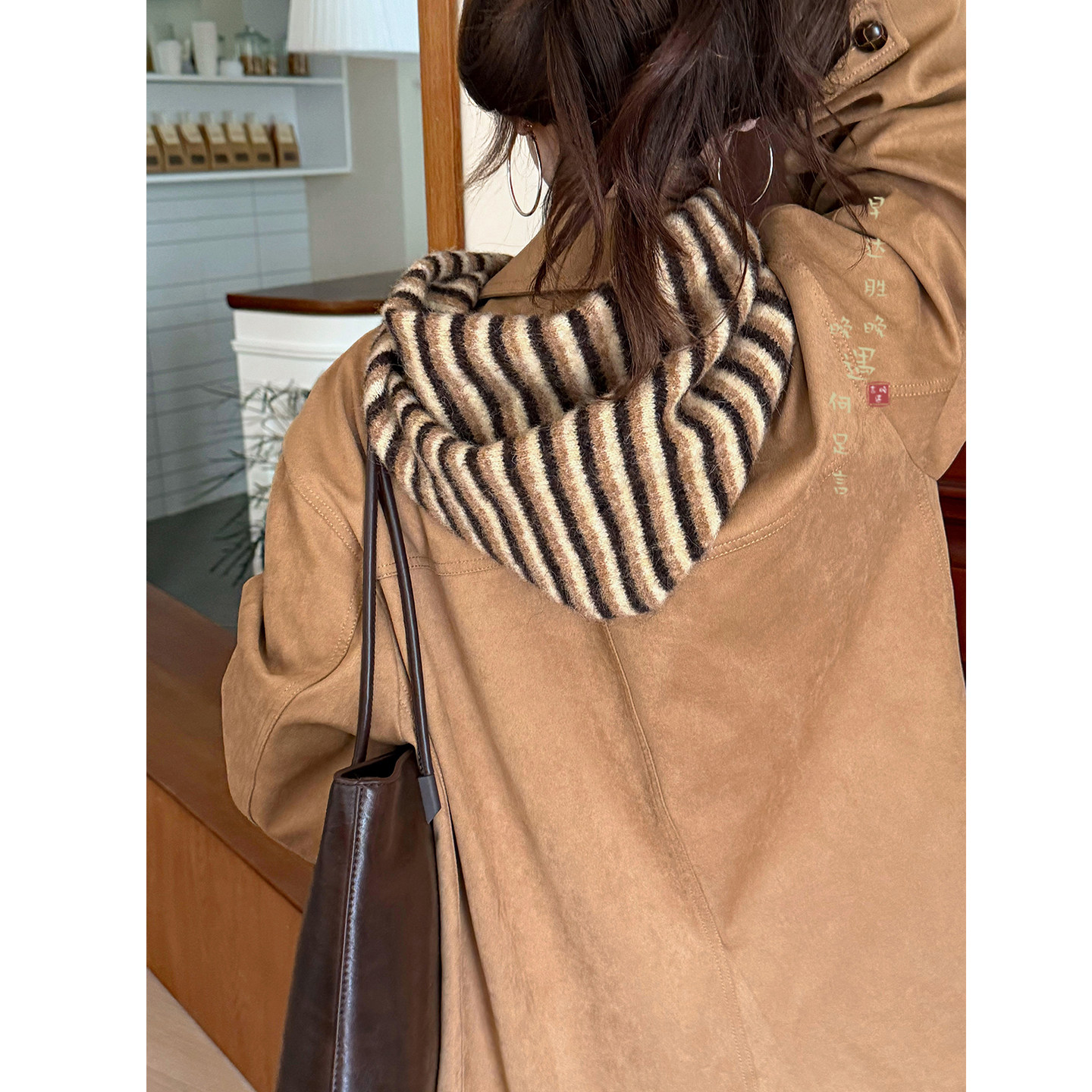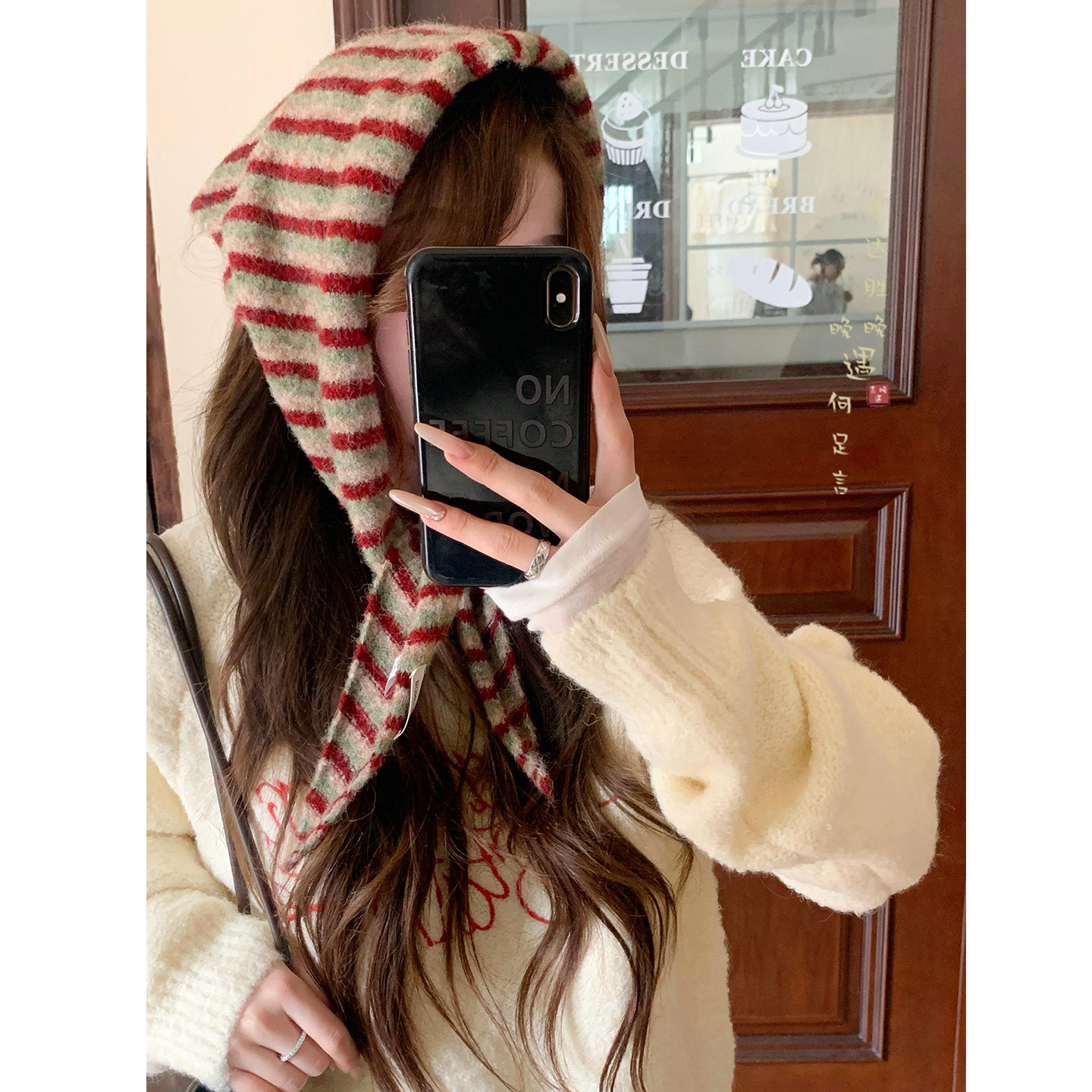暖冬信物!针织条纹羊绒三角巾围巾女生秋冬季圣诞节保暖披肩护颈