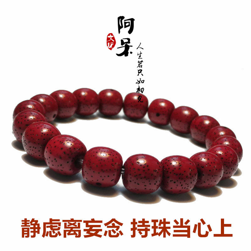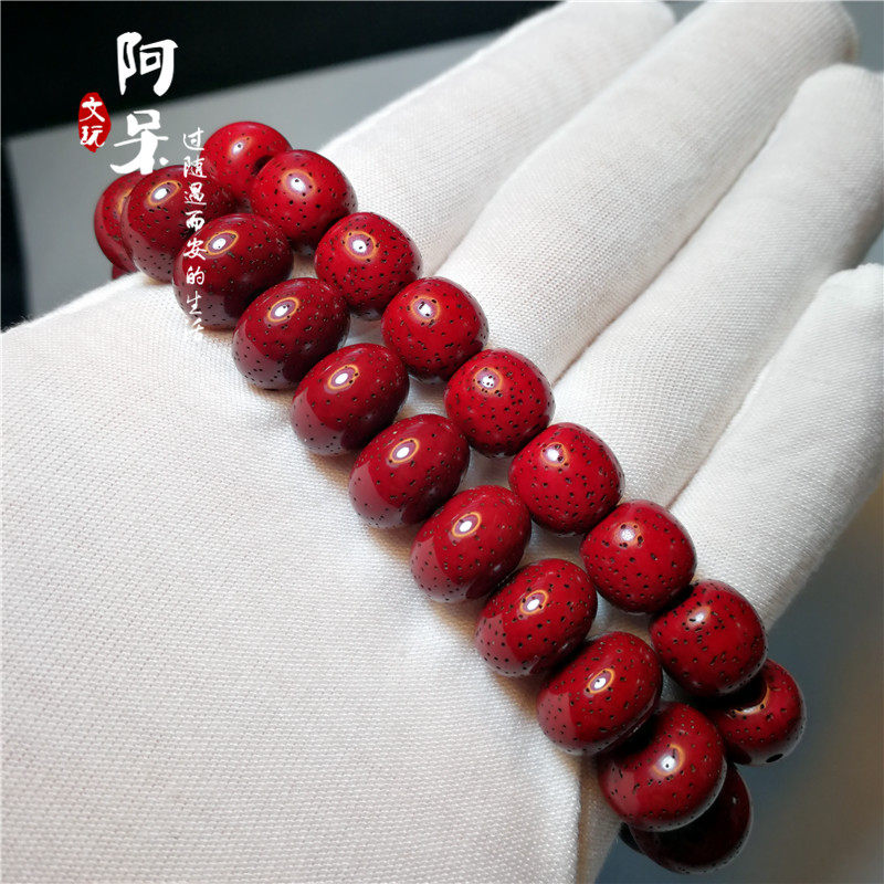 天然古法朱砂供星月菩提子单圈阿摩罗正月老型桶毛感料男女红手串