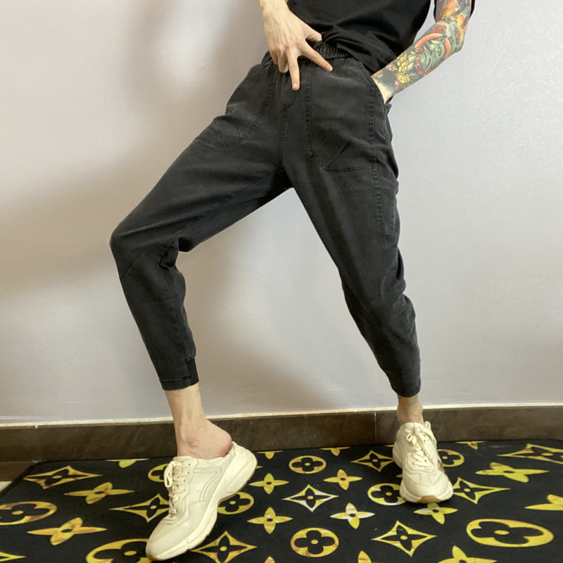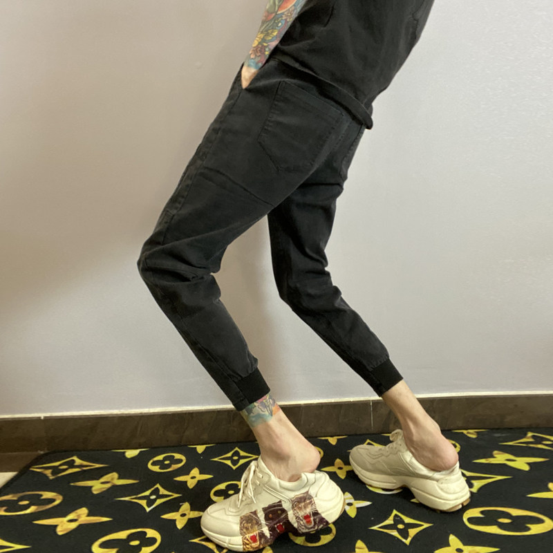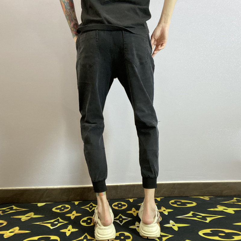黑色牛仔裤男九分修身小脚裤秋季薄款休闲长裤男士百搭显瘦束脚裤