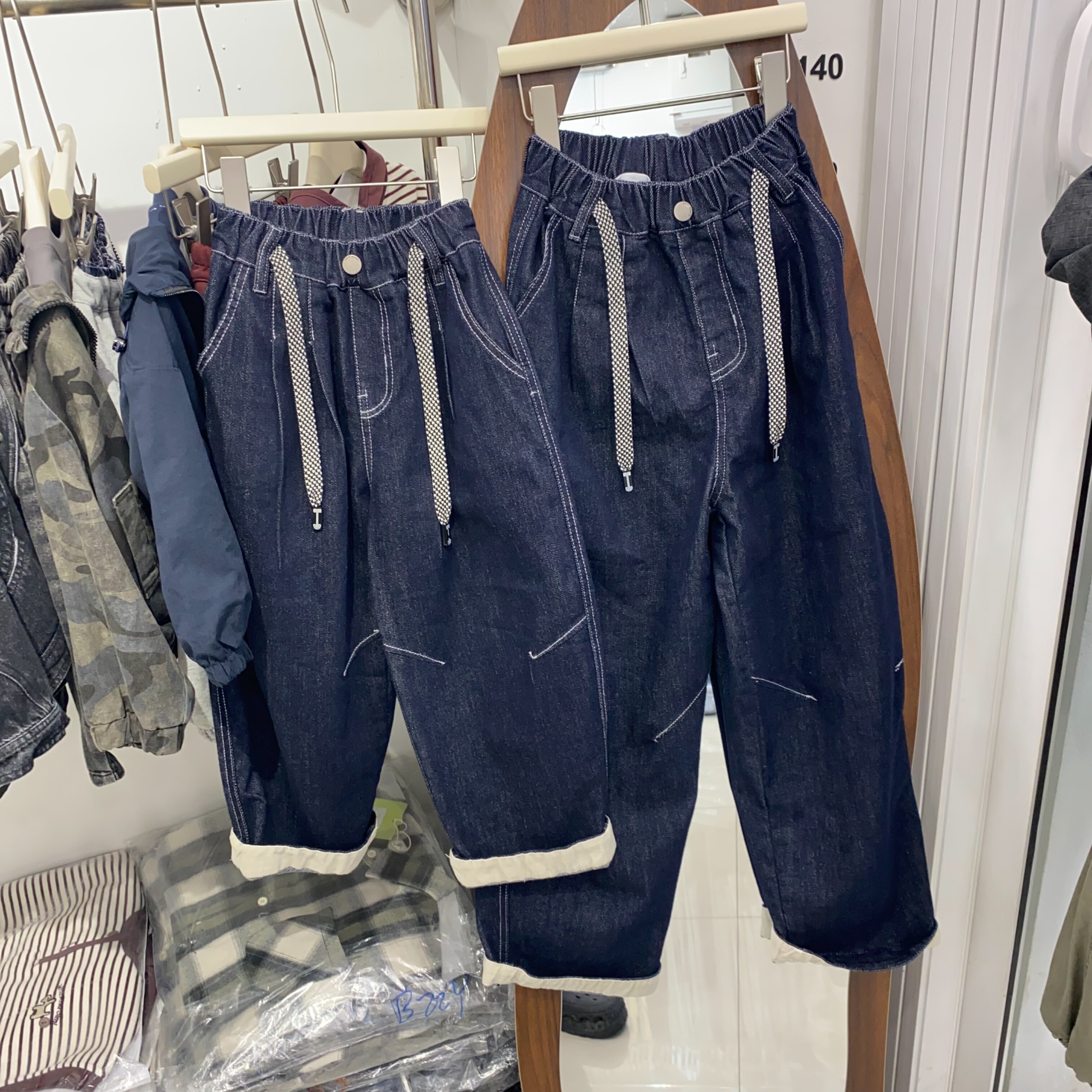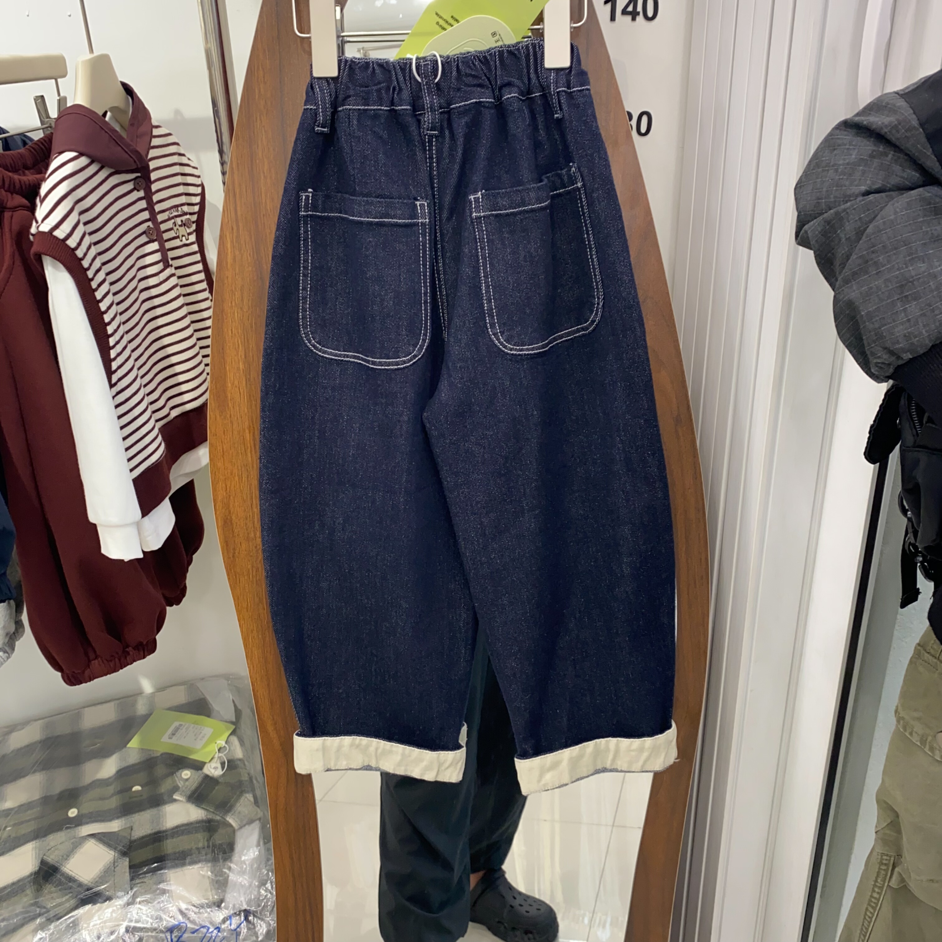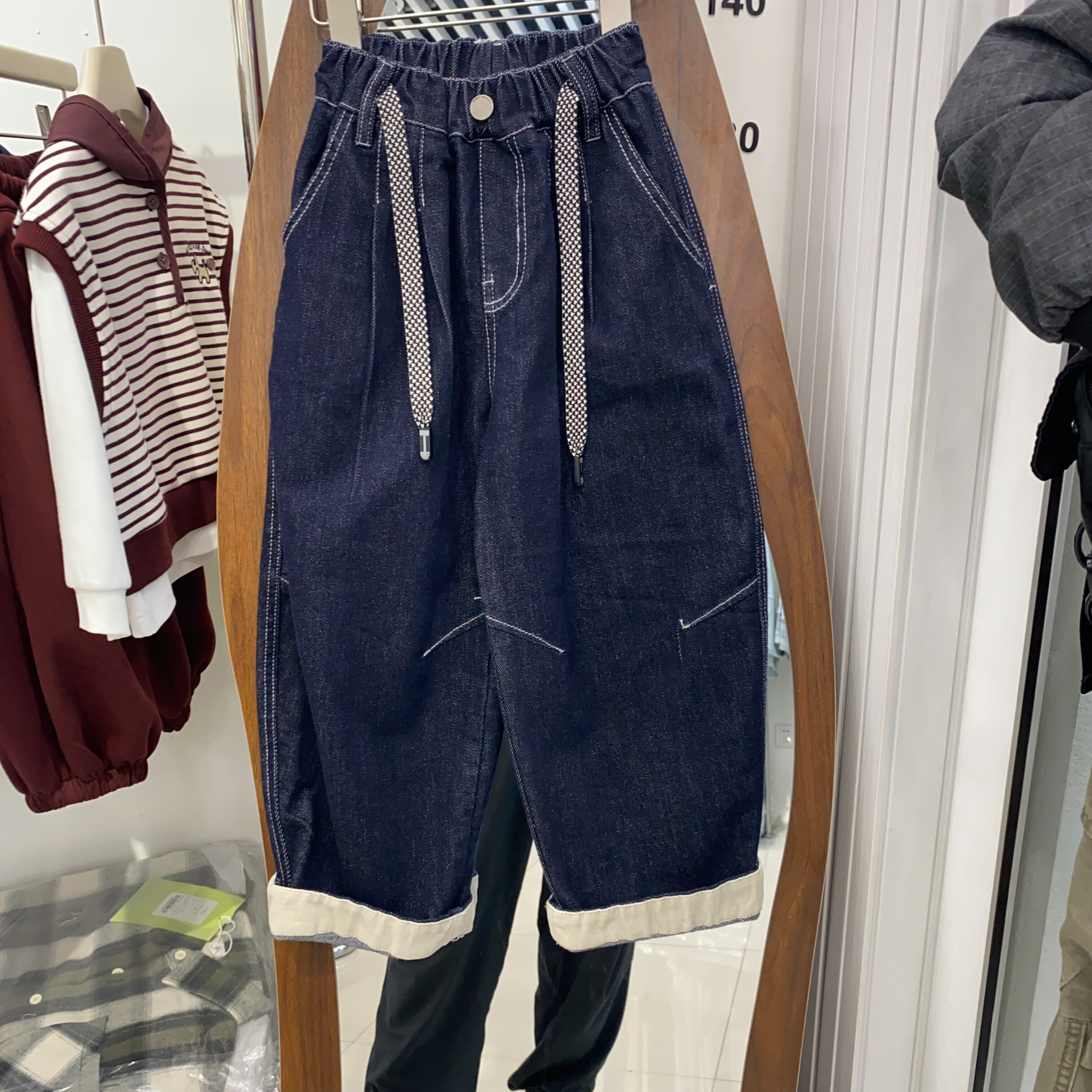 2025年新款男女童裤子宽松中大童痞款翻边原色牛仔裤