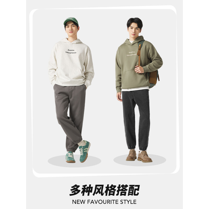 热风男装24冬新款男士帅气休闲舒适百搭卫衣字母刺绣加绒卫衣
