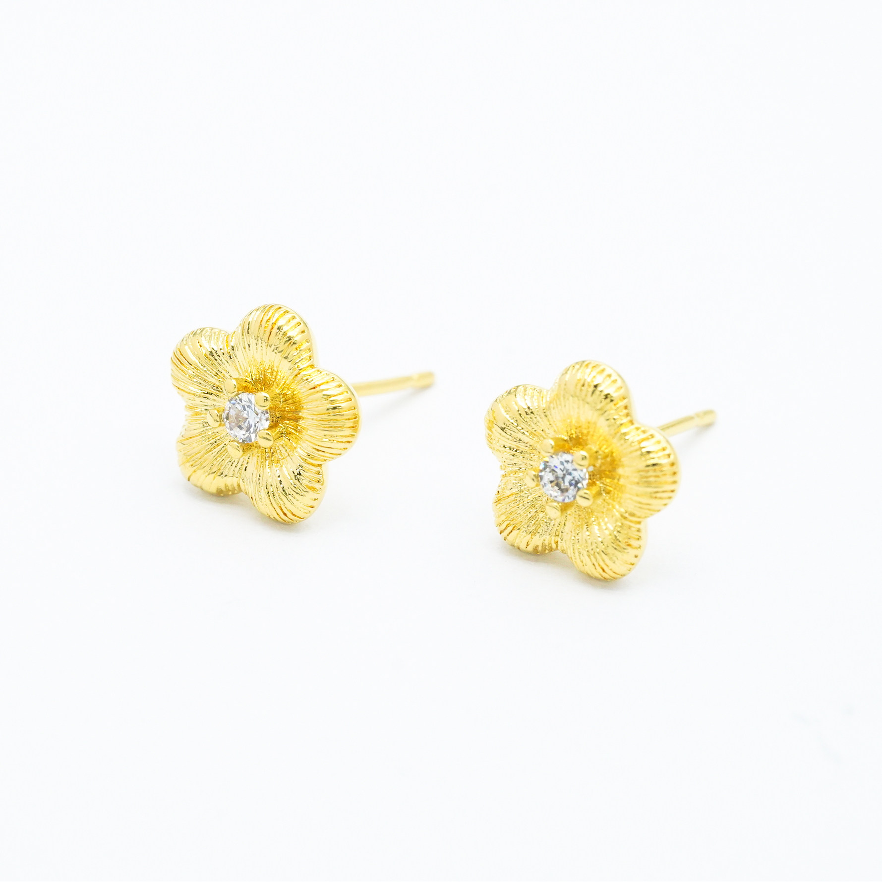【店铺专属】18k金拉丝小花耳钉耳饰女(一对)不脱模【WT0532】