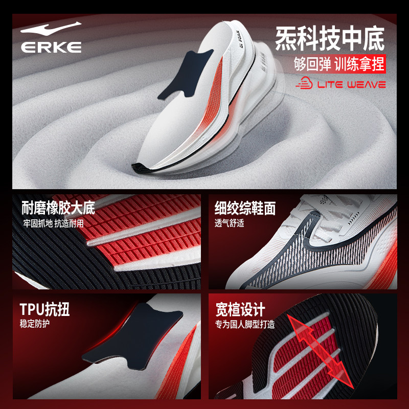 鸿星尔克飞将跑步鞋男鞋新款运动鞋减震无板训练鞋宽楦稳定慢跑鞋