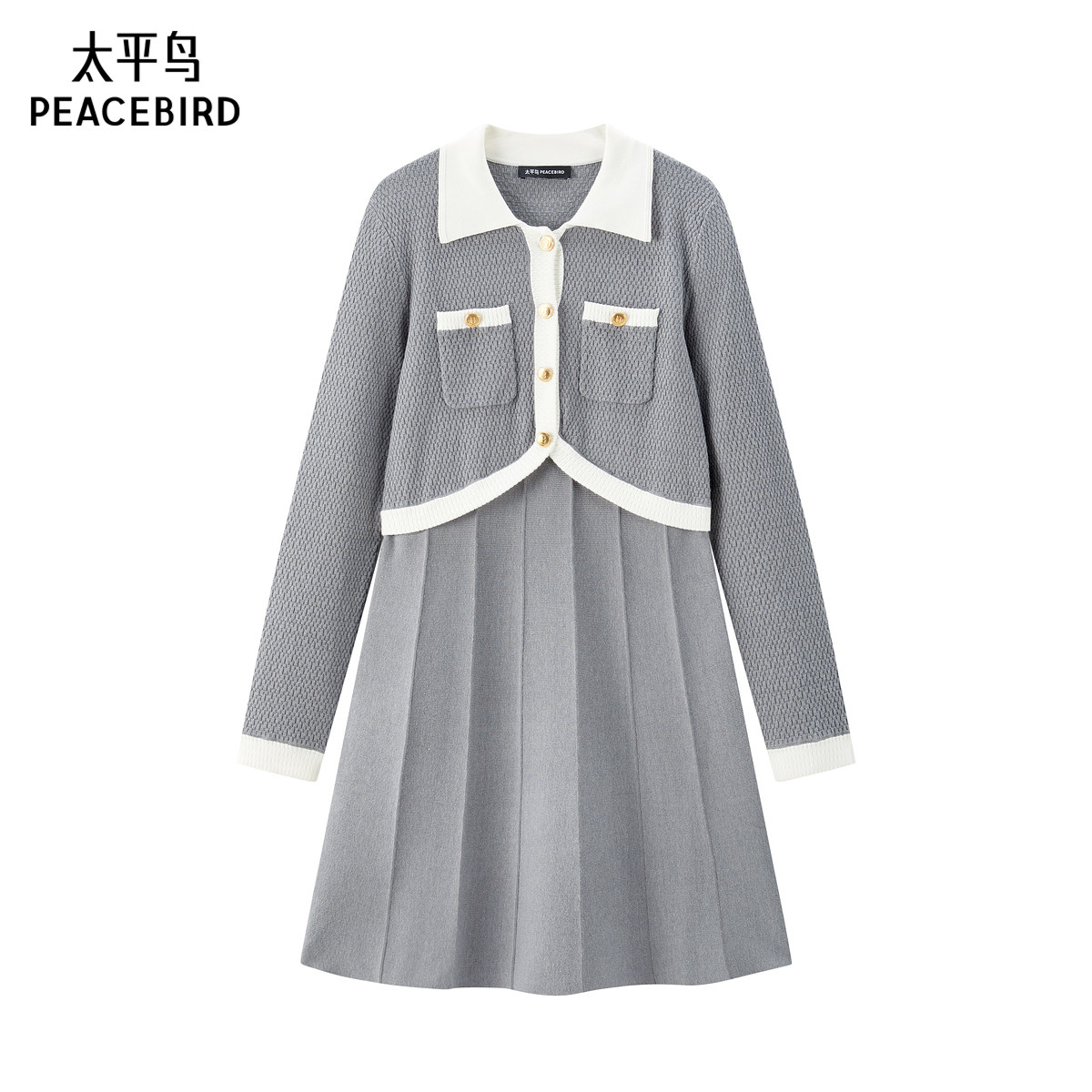 太平鸟黑色小香风针织连衣裙女品质高级感2025新款时尚气质连身裙