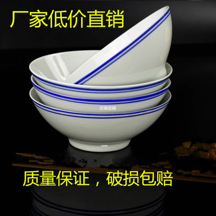 景德镇陶瓷老式蓝边碗豆浆碗面碗汤碗饭碗怀旧家用餐具可定制logo
