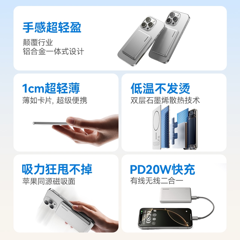 【3C认证可上飞机】MOMAX摩米士2025新款金属超薄磁吸充电宝MagSafe大容量适用苹果17iPhone16promax移动电源