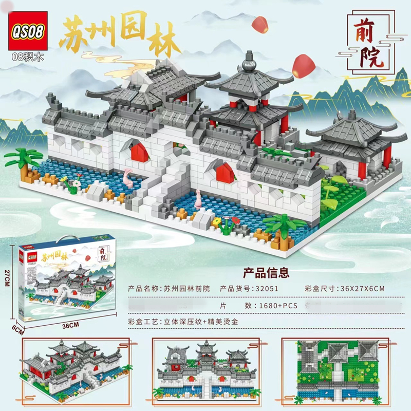QS08苏州园林中国古建筑模型拼插积木玩具四合院江南主题男孩礼物