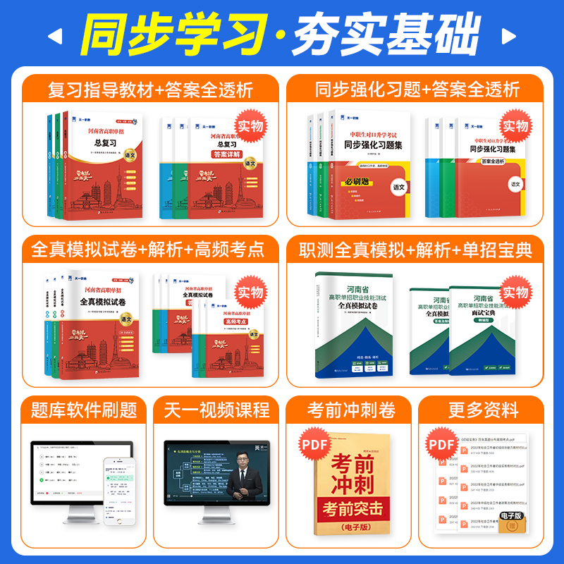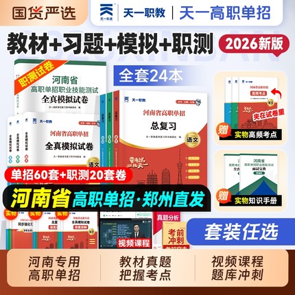 天一2026年河南省高职单招中职生对口升学考试复习资料综合素质职业技能测试职测语数英教材真题高等面试卷总复习职教高考指导中等