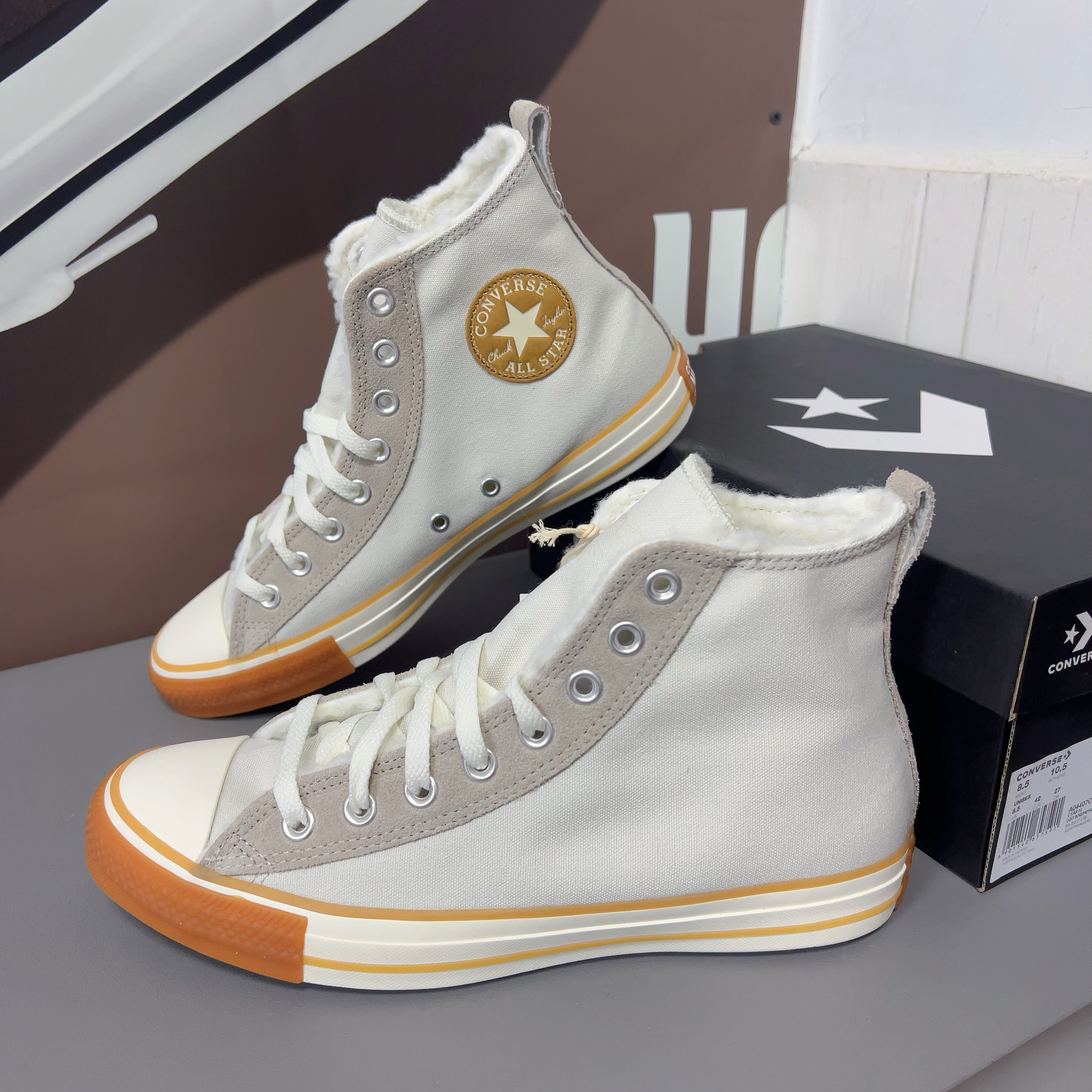 断码特价清货正品匡威秋冬款拼接男女高帮加绒保暖帆布鞋 A04407C