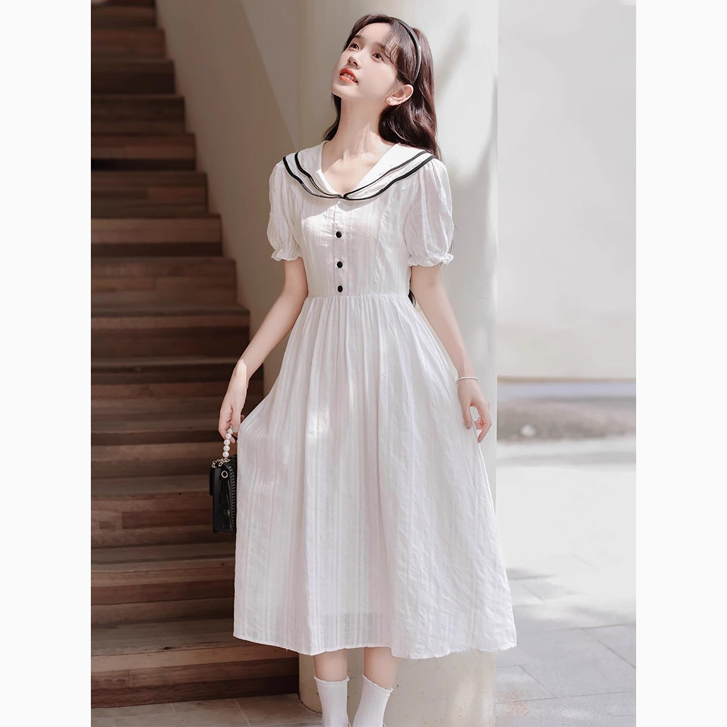 少女甜美娃娃领连衣裙2025夏装新款学院风初高中学生收腰过膝长裙