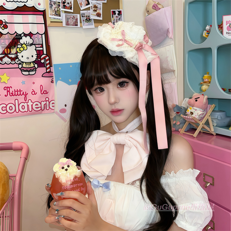 芭蕾风蝴蝶结飘带小礼帽发夹女甜美洛丽塔lo娘粉色头饰lolita发饰