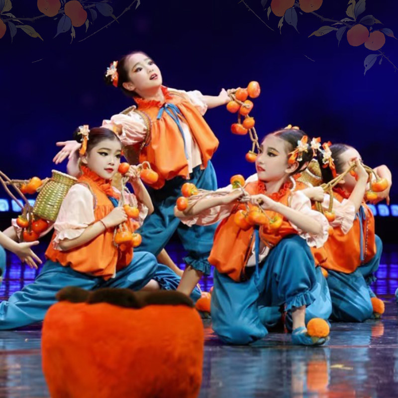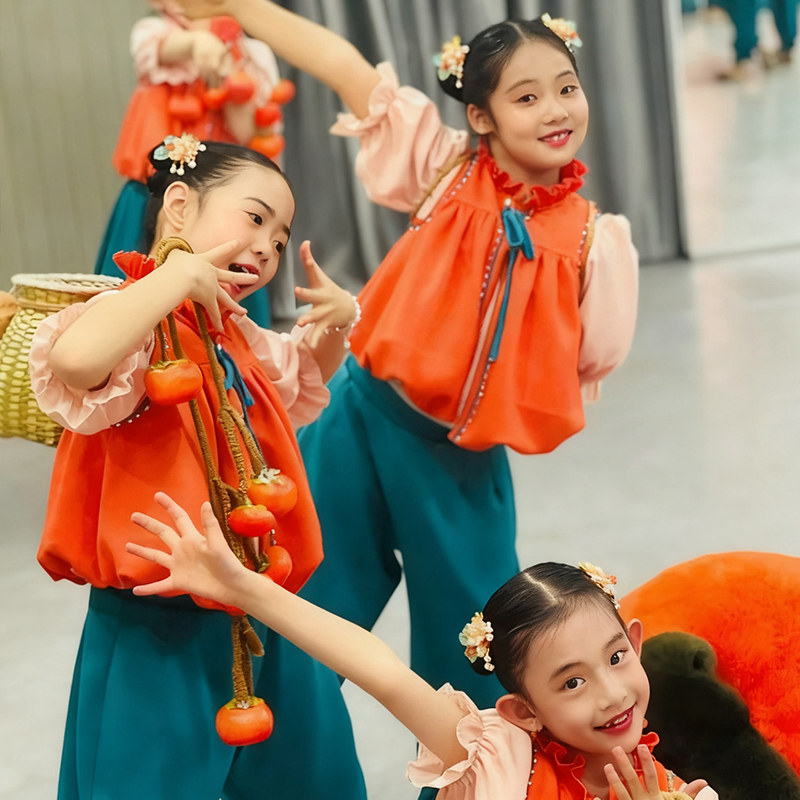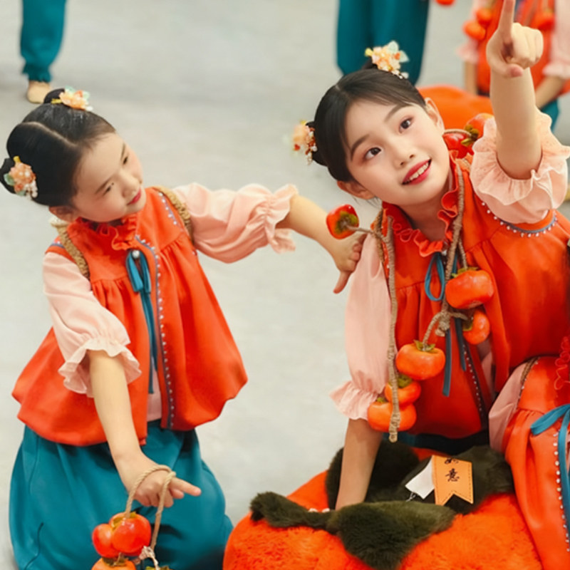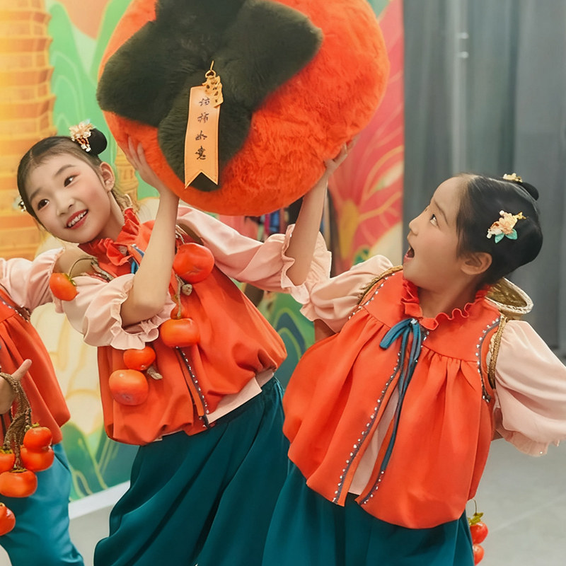 柿柿如意儿童舞蹈演出服丰收节服装柿子背篓道具幼儿园喜庆表演服