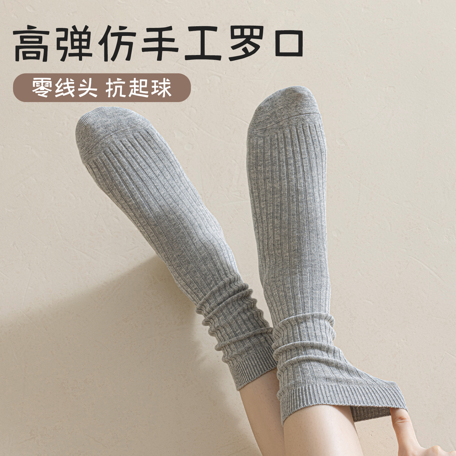 灰色袜子女款堆堆袜春秋季中筒袜纯棉2025新款爆款秋冬无骨长筒袜