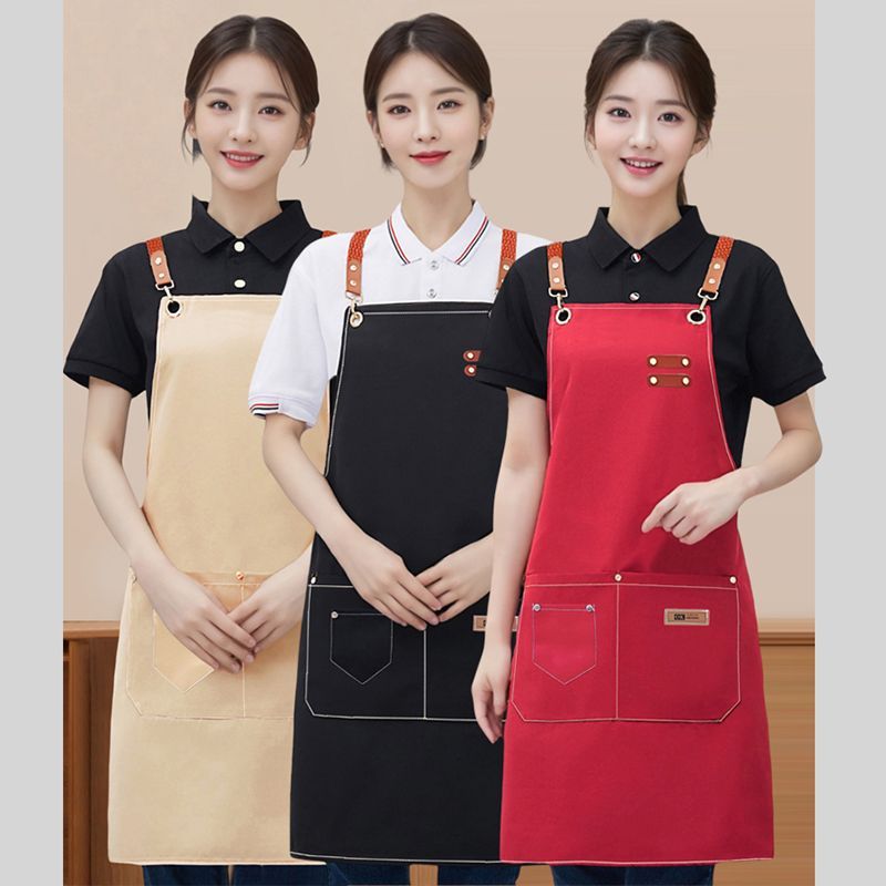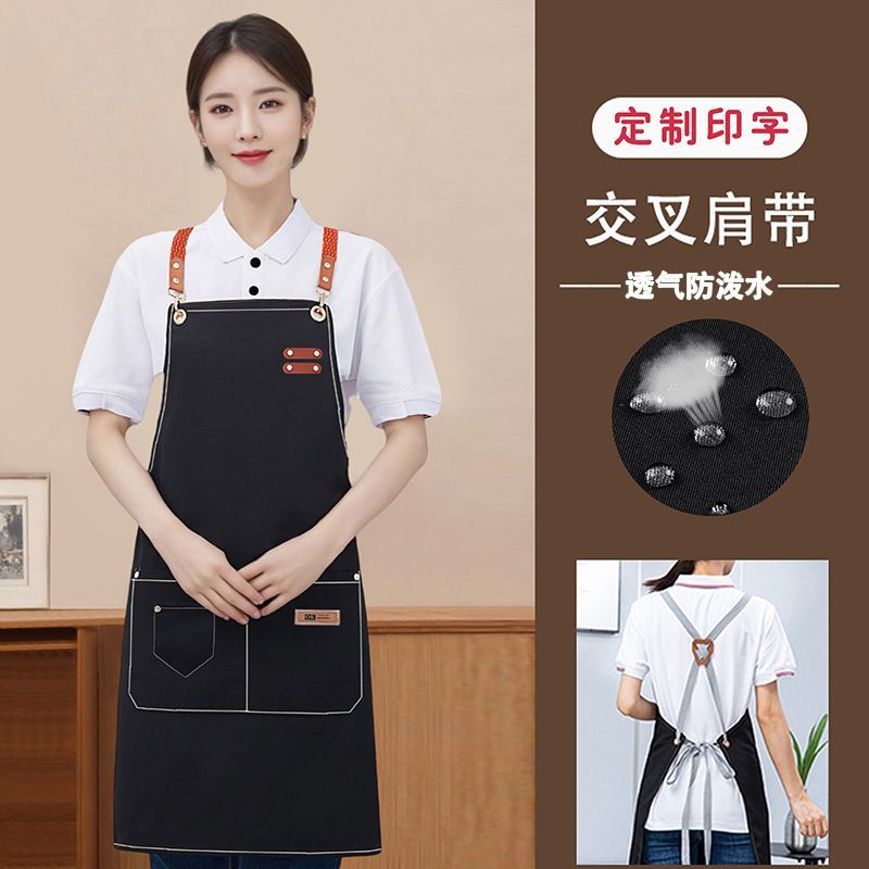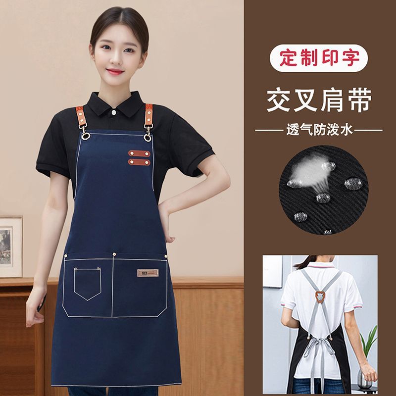 围裙餐饮专用定制logo印字厨房防水防油服务员工作服挂脖长款围腰