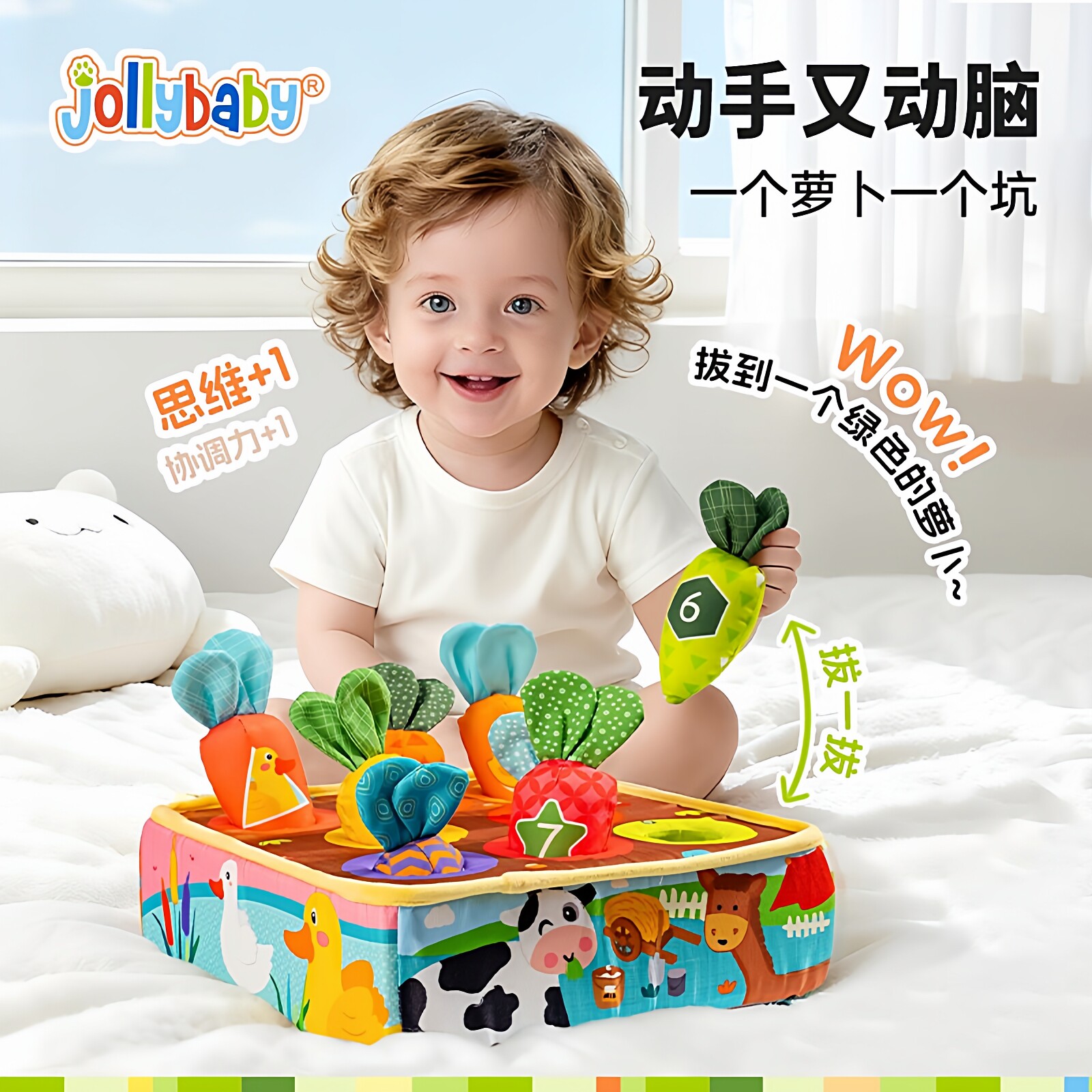 jollybaby拔萝卜毛绒玩具可啃咬婴儿过家家宝宝早教动手拔拔乐1岁