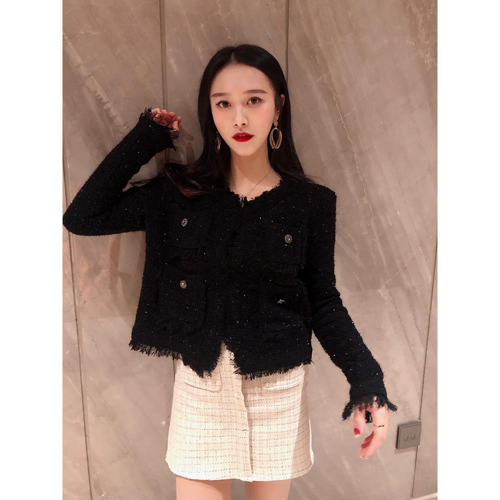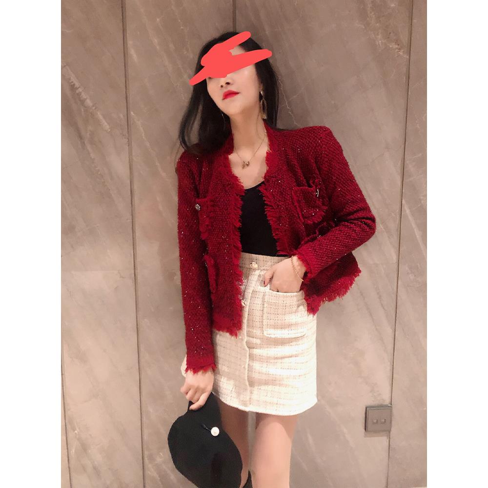 车厘子色小香风外套女春秋短款复古流苏针织开衫网红气质显瘦上衣