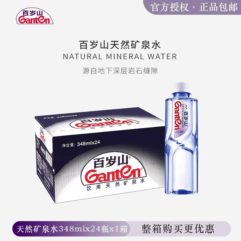 百岁山天然矿泉水348ml*24整箱会议车载小瓶装便携饮用纯净水批发