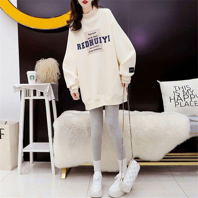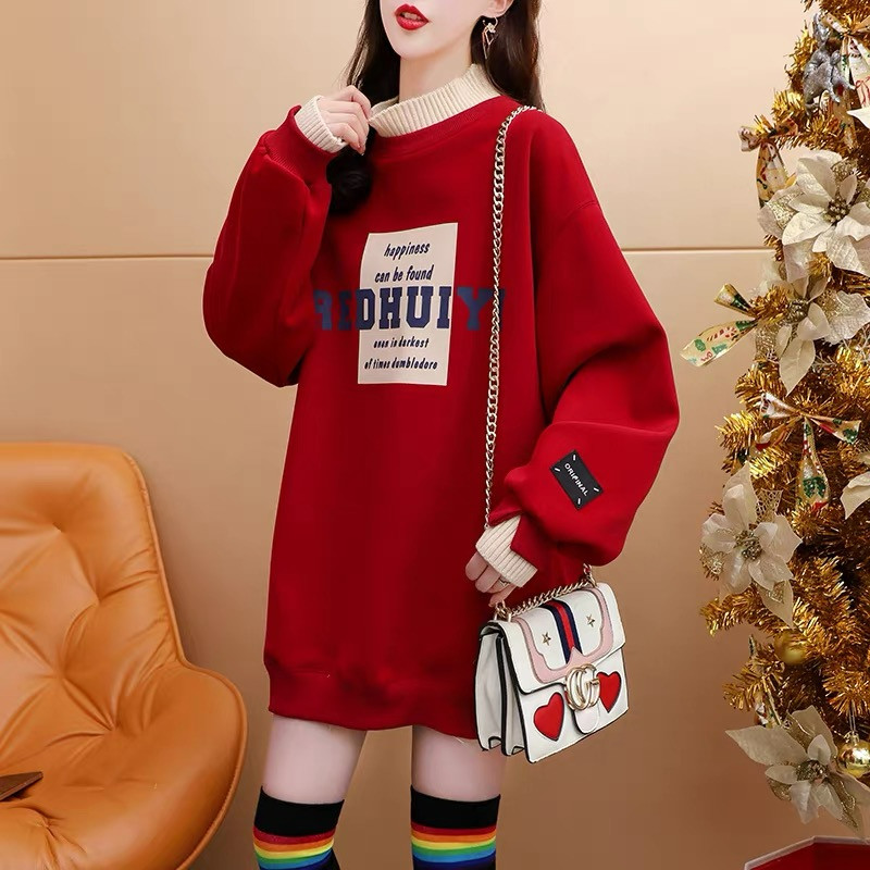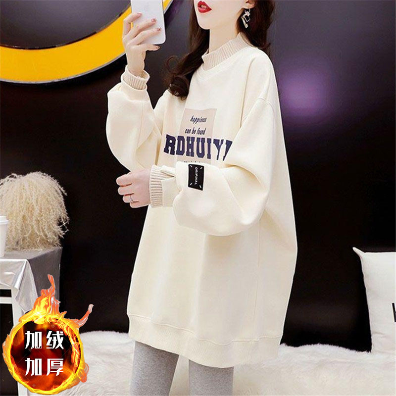 大码女装设计感加绒加厚卫衣女秋冬季新款韩版宽松百搭假两件上衣