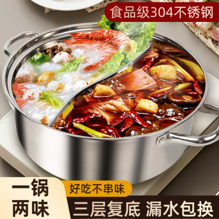 鸳鸯锅火锅家用304不锈钢厚底汤锅电磁炉专用一体火锅盆商用锅具