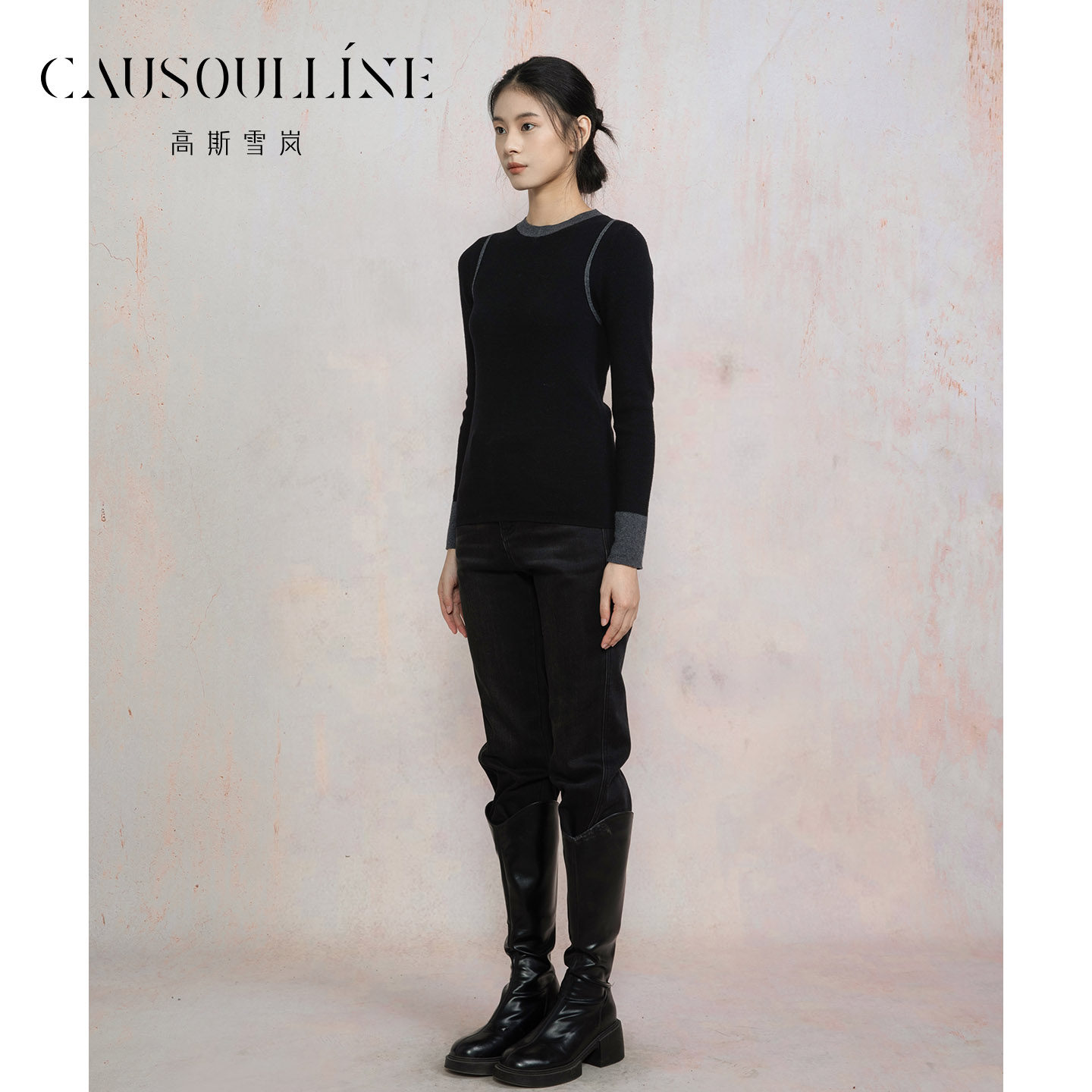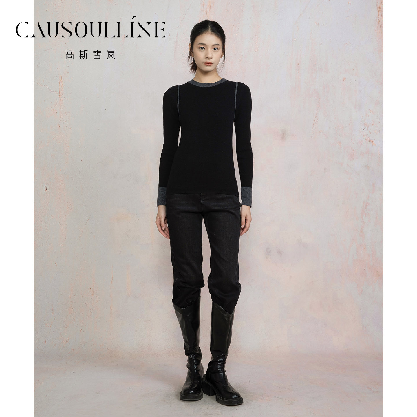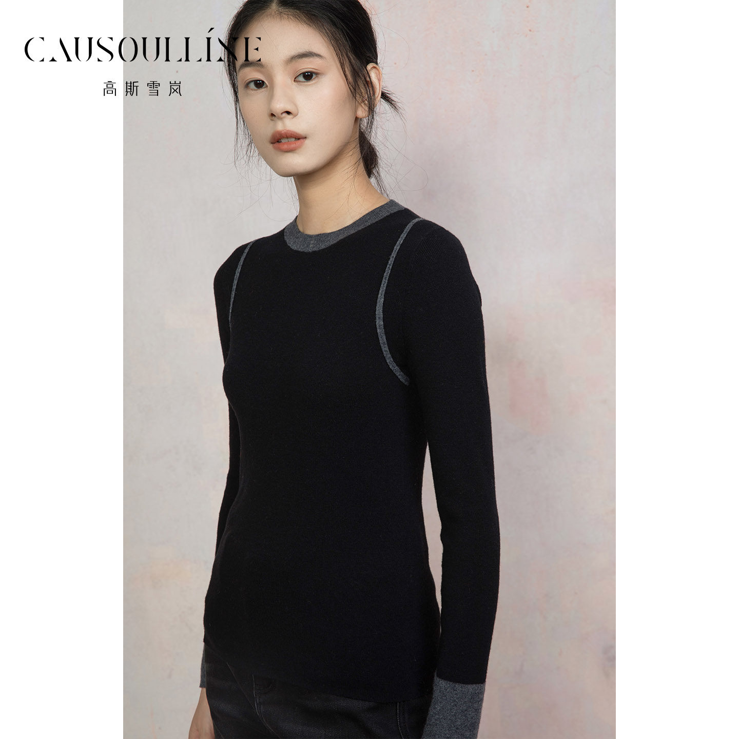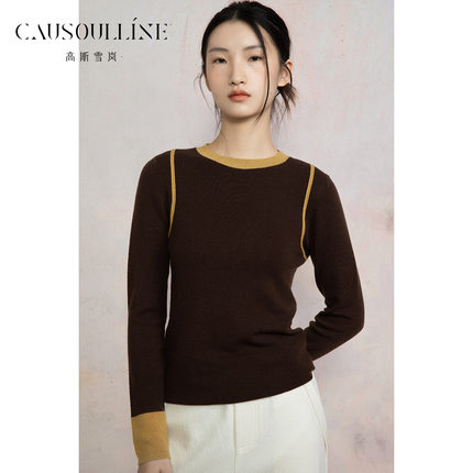 高斯雪岚2025冬新款时尚圆领针织衫拼色打底毛衣商场同款25413173