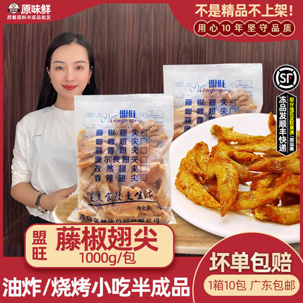 盟旺藤椒翅尖冷冻鸡尖藤椒味鸡翅尖腌制调理油炸小吃1000g/包