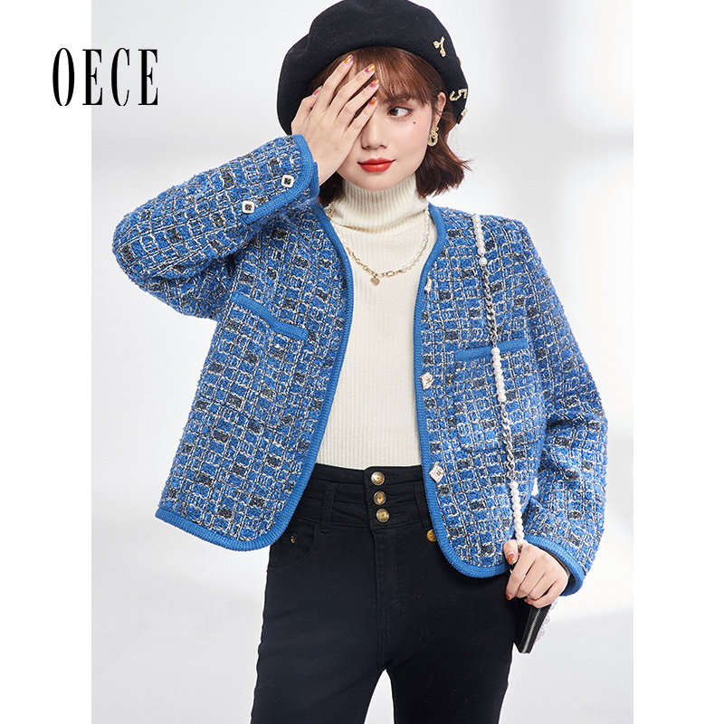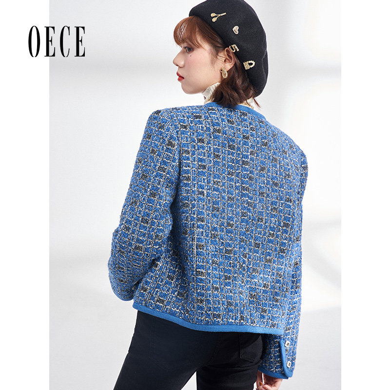Oece复古小香风外套冬新款女气质花呢外套小个子