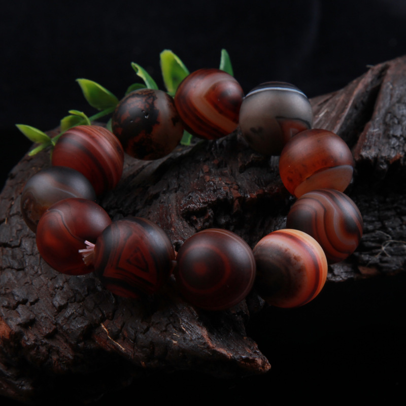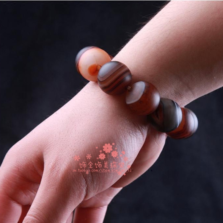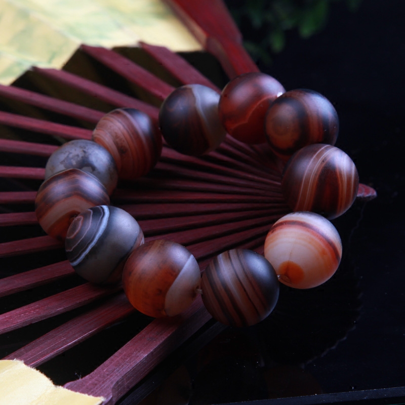 纯天然磨砂蚕丝黑玛瑙佛珠手链