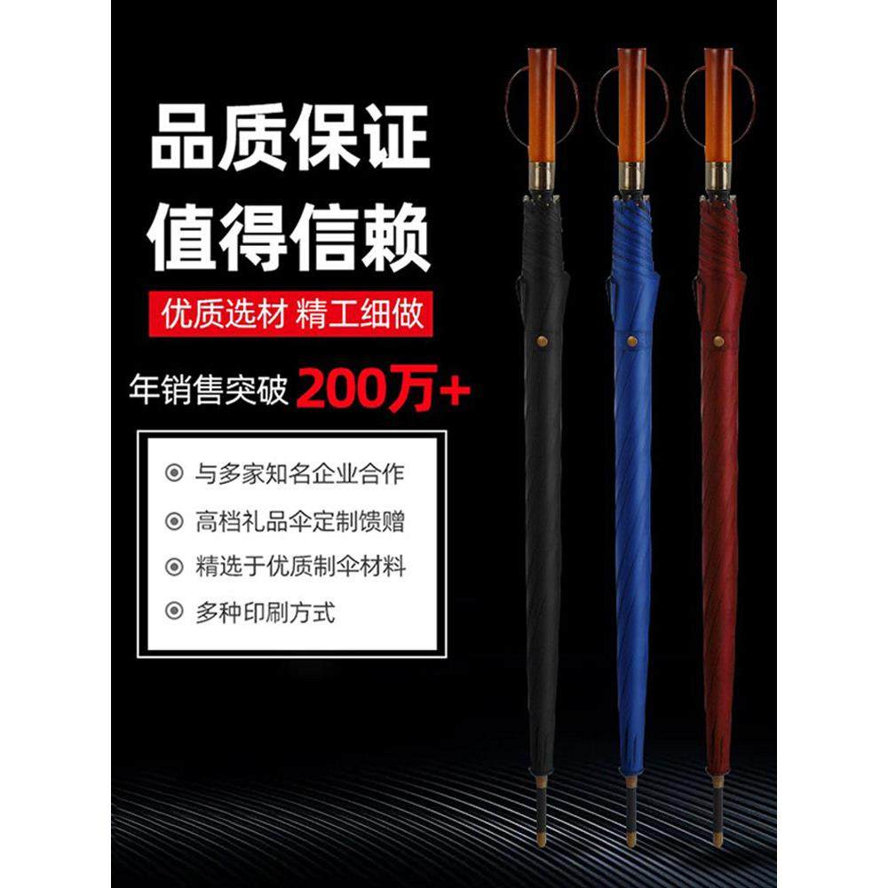 商务实木手柄大号长雨伞定制logo高端抗风直杆双人广告伞印图案字