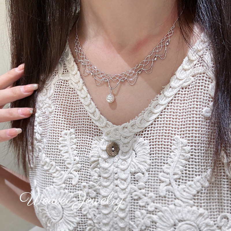 小众轻奢气质高级感轻珠宝925银镀金精致蕾丝流苏睫毛项链锁骨链