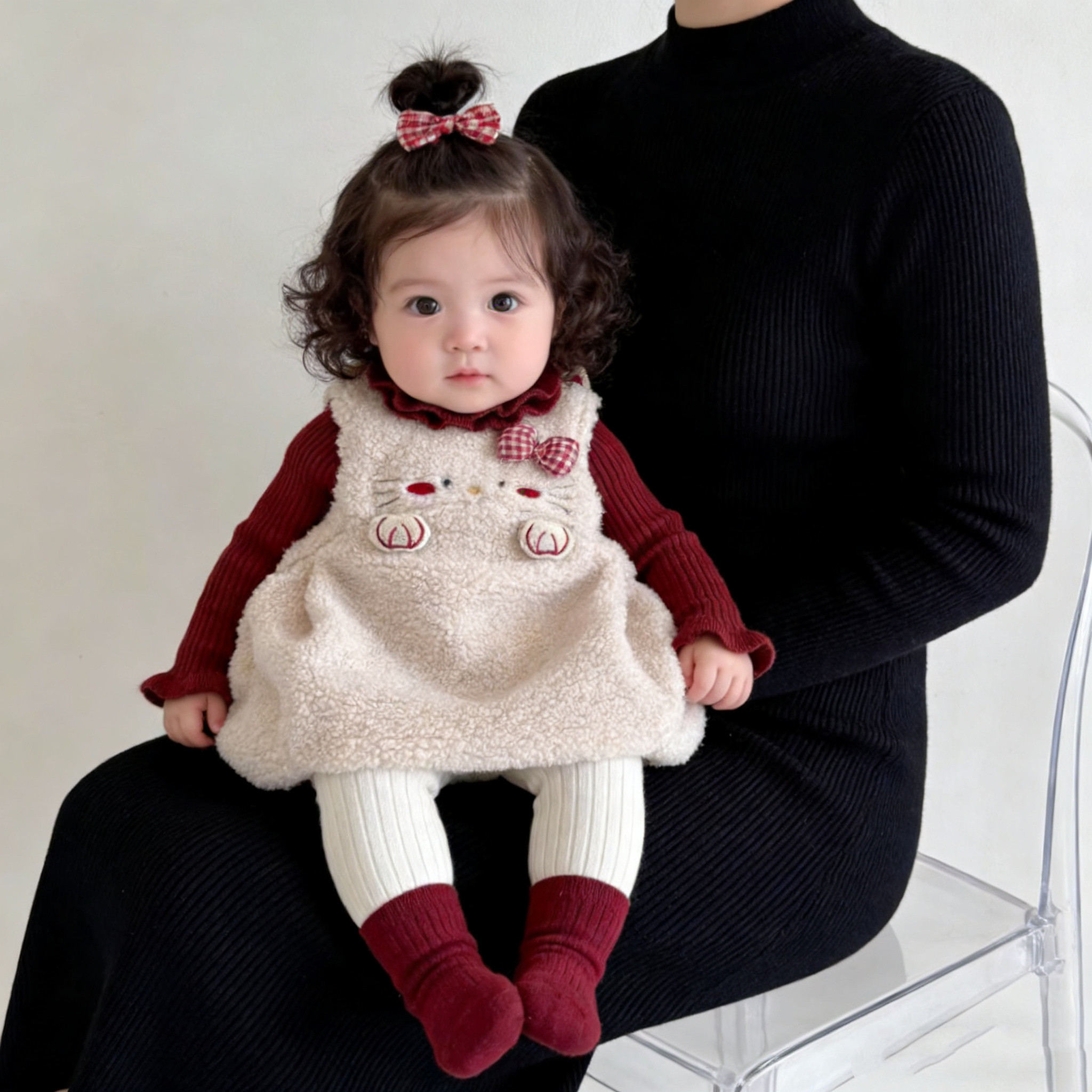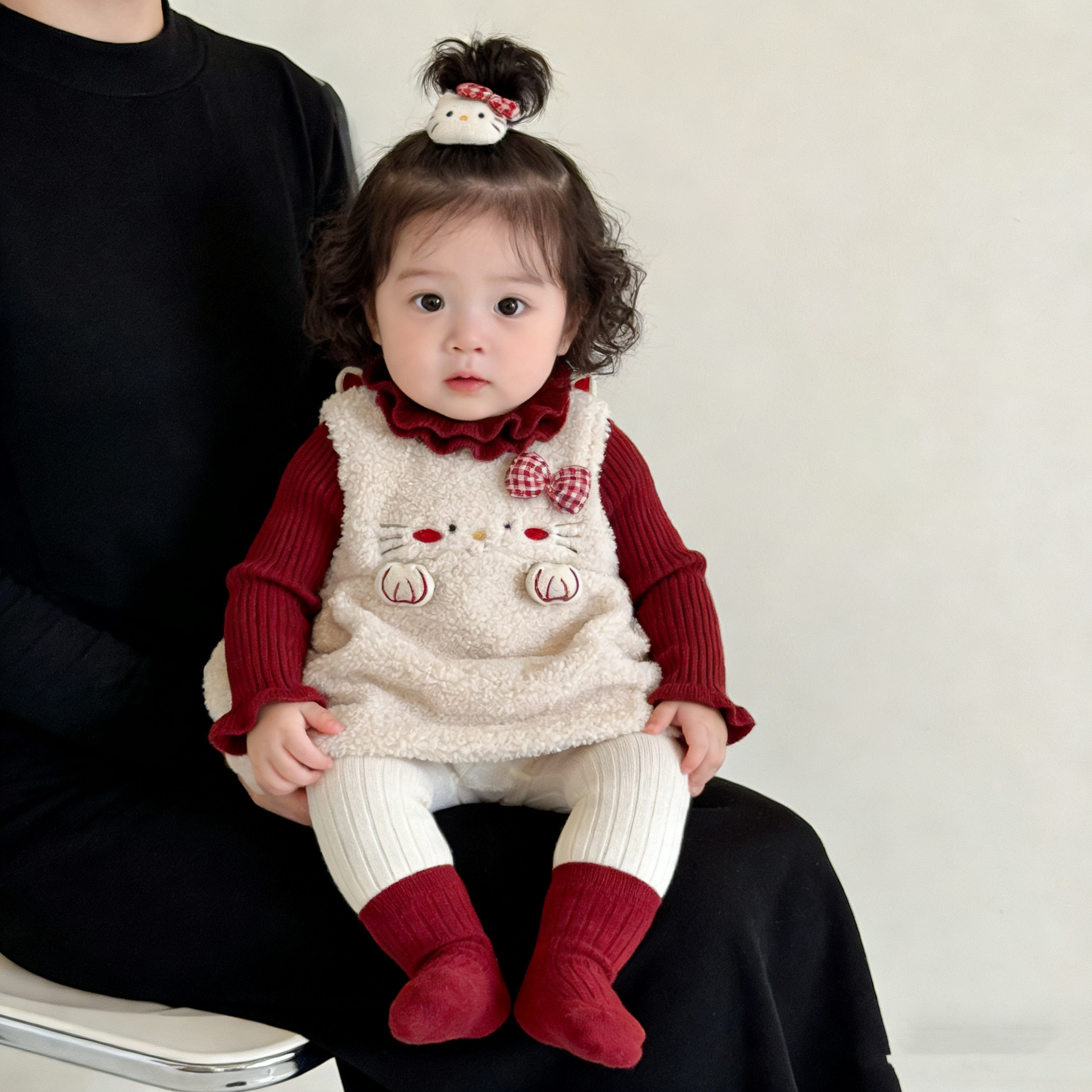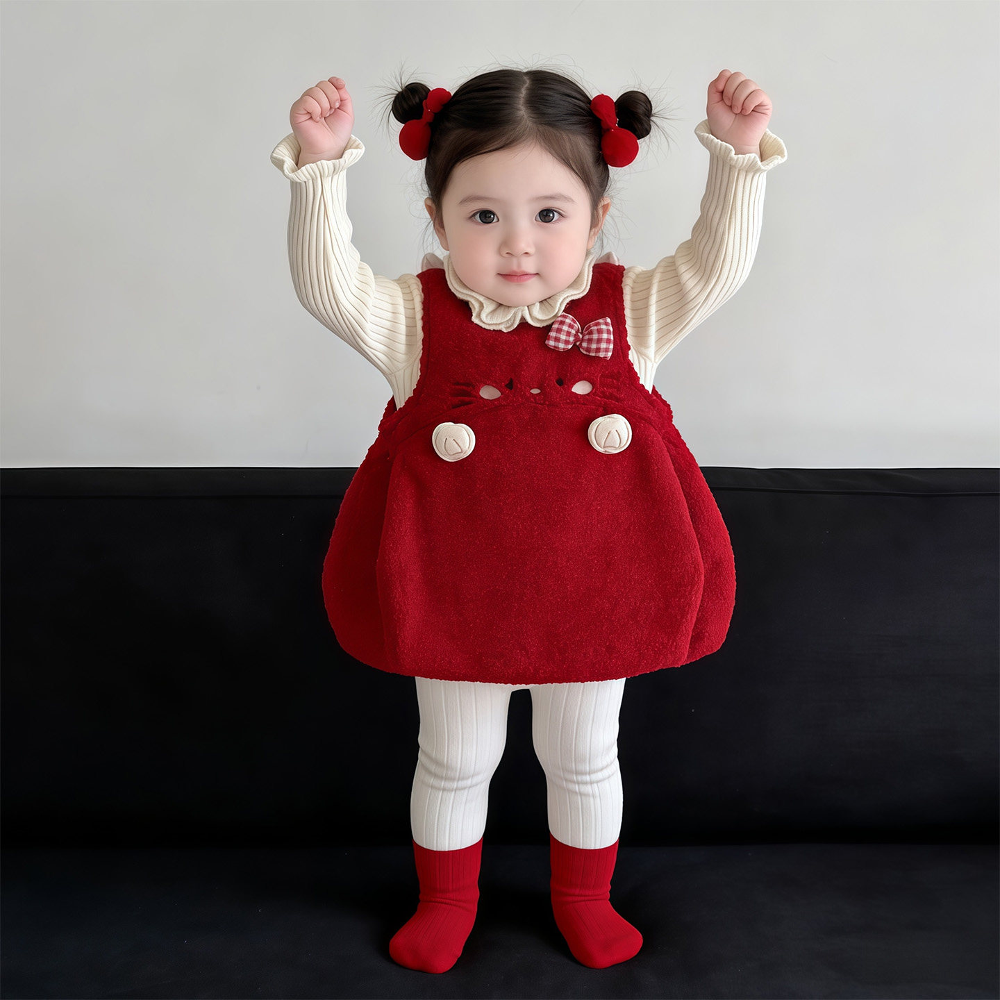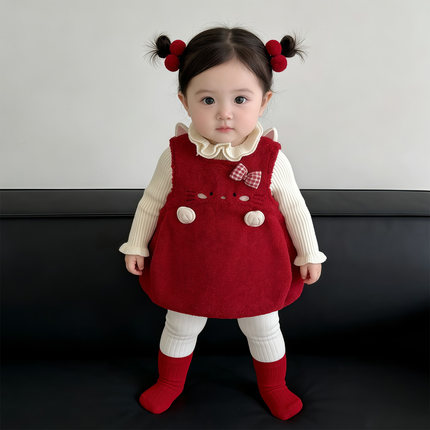 女宝宝新年连体衣25冬季女童加绒背心裙保暖拜年服裙子圣诞连衣裙