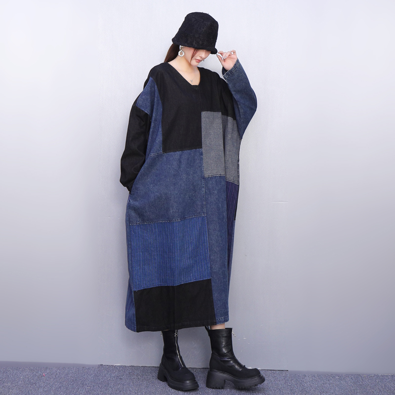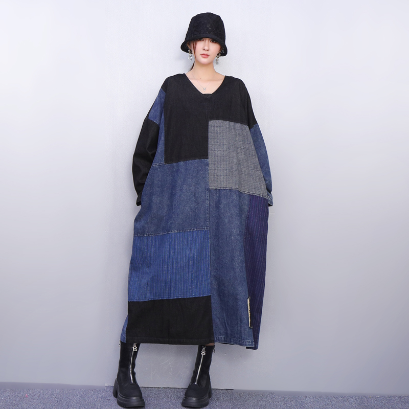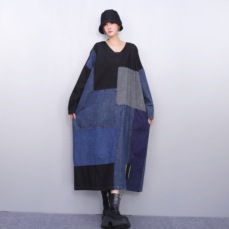 设计感2025秋新款女连衣裙宽松拼色牛仔裙时尚显瘦休闲复古百搭
