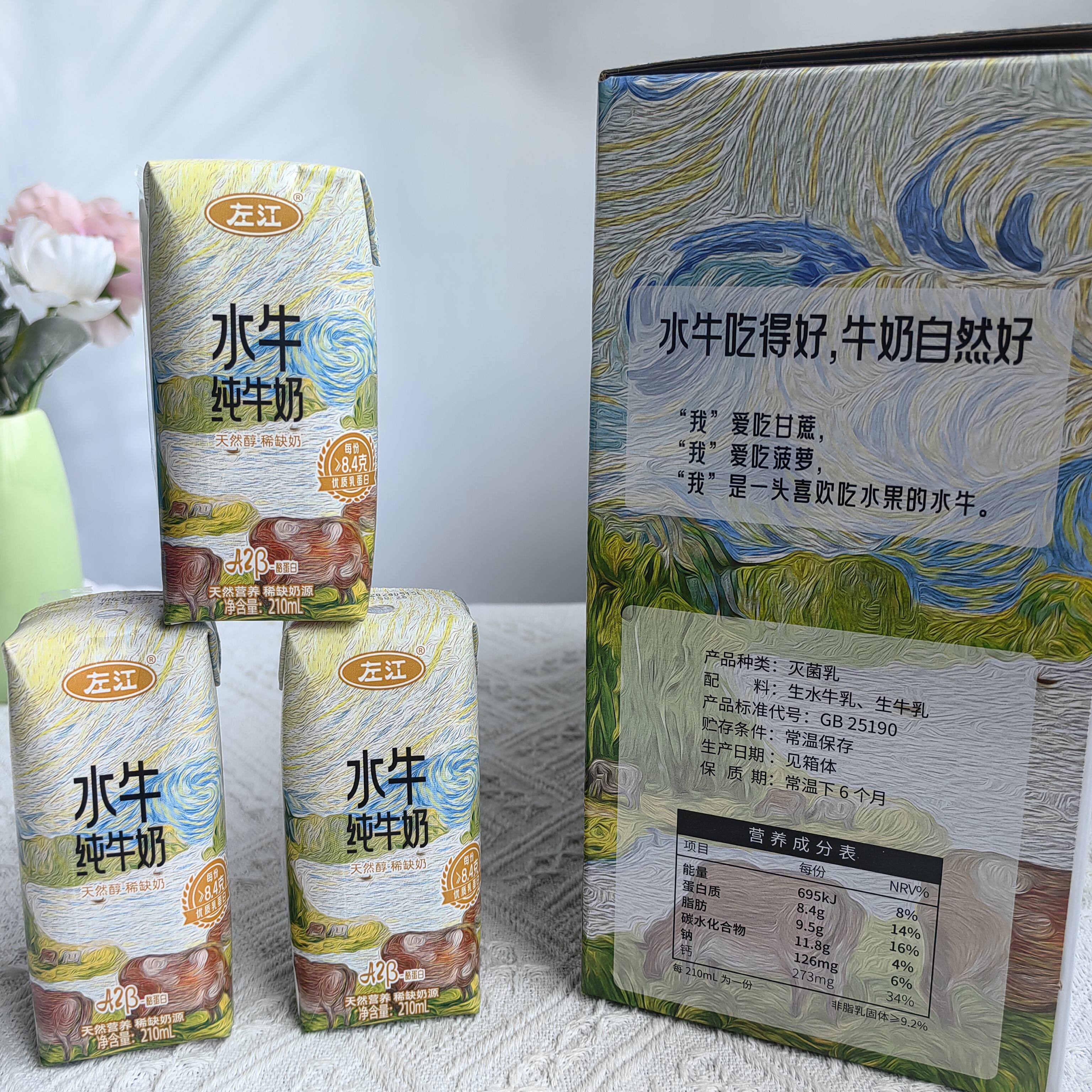 左江水牛纯牛奶A2β酪蛋白8.4g210ml*12盒整件