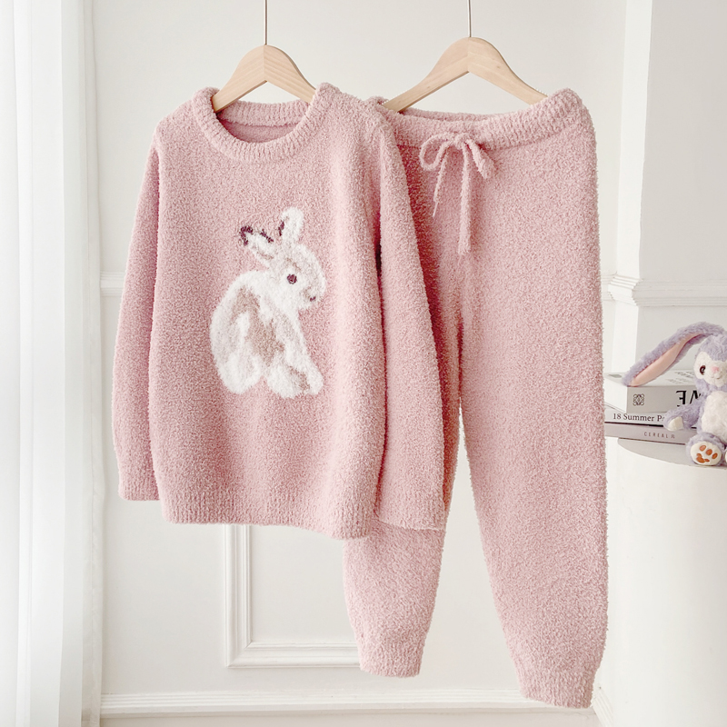 秋冬亲子儿童睡衣半边绒女童珊瑚绒家居服宝宝套装软绵绵圣诞加厚
