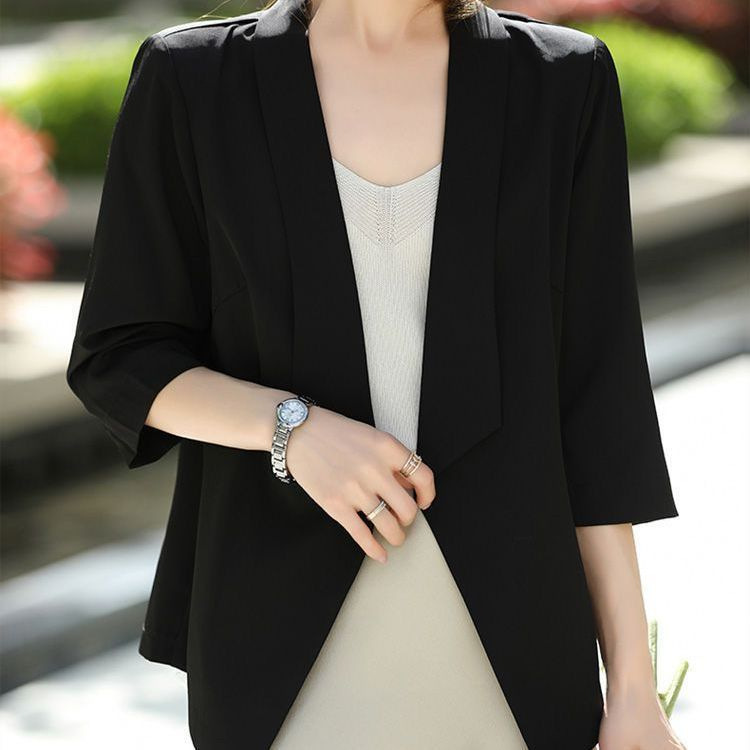 小西装外套女春秋薄款气质大码显瘦小西装七分袖外搭潮