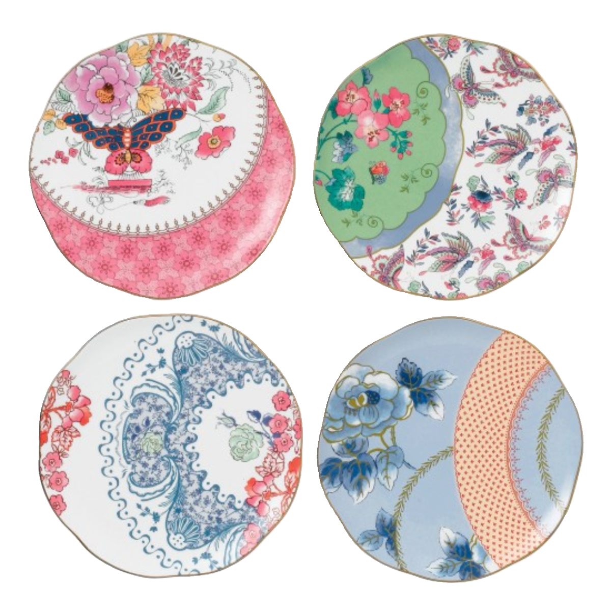 特价礼盒略不好 售完无补Wedgwood 彩蝶恋花盘四件套骨瓷欧式餐盘