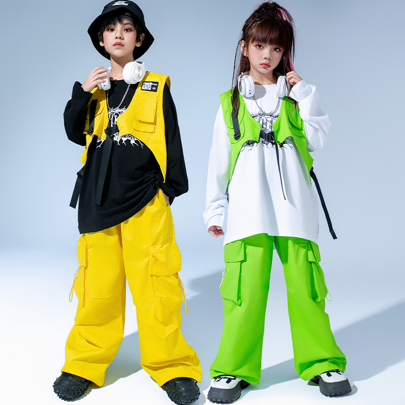 街舞儿童潮服hiphop嘻哈男童工装裤演出服装女童爵士舞表演服套装