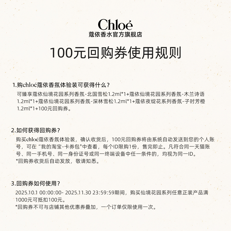【会员尊享】Chloe蔻依仙境花园蔻依寻香香氛体验装+100元回购券