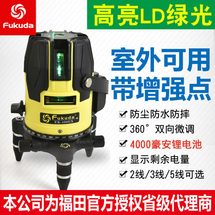 福田激光水平仪绿光蓝2/3/5线400带点强光室外高精度触摸锂电投线