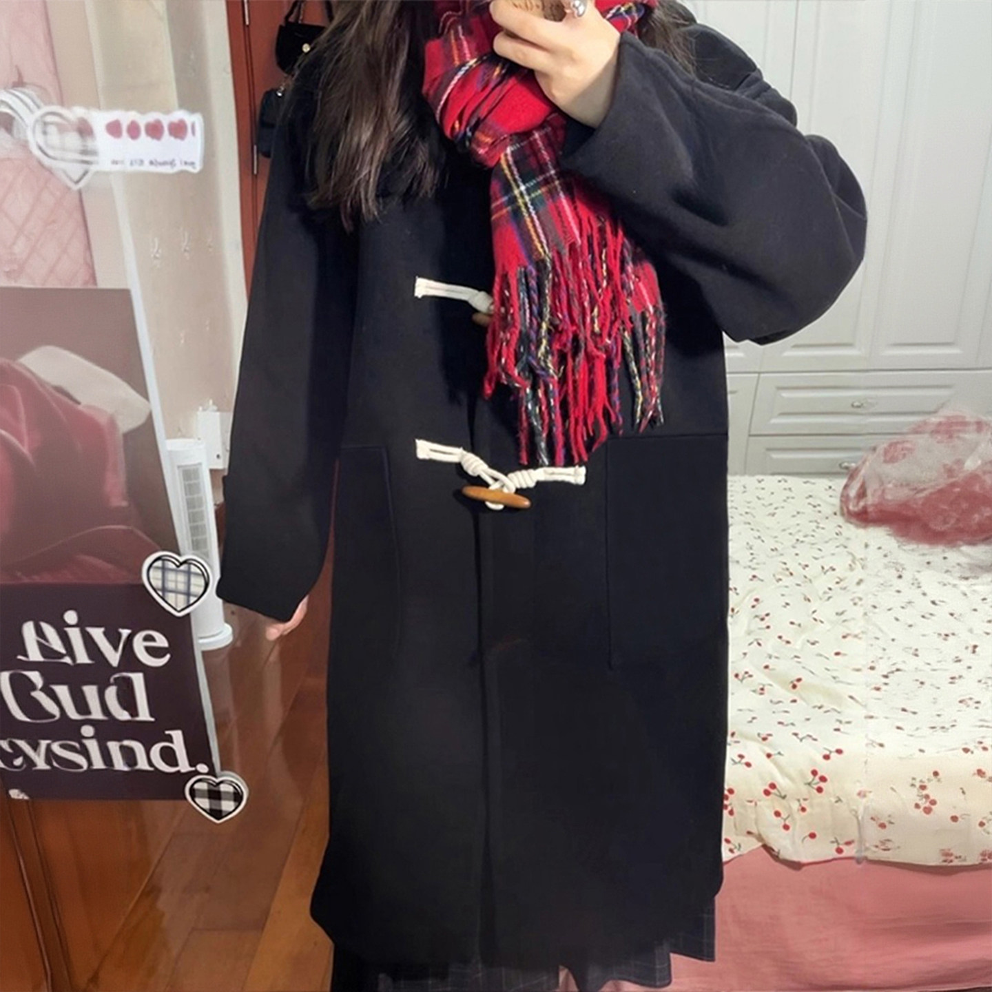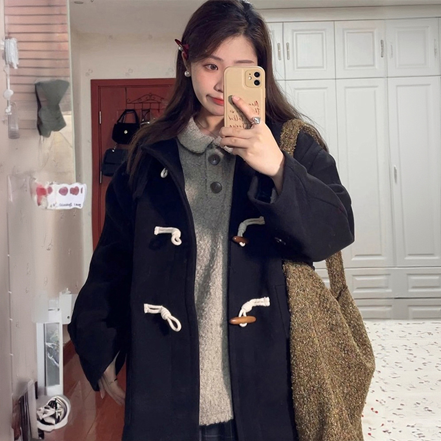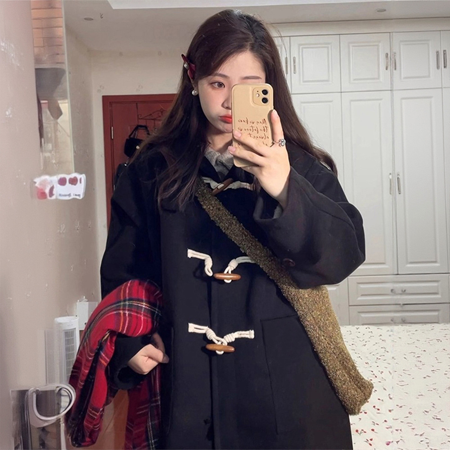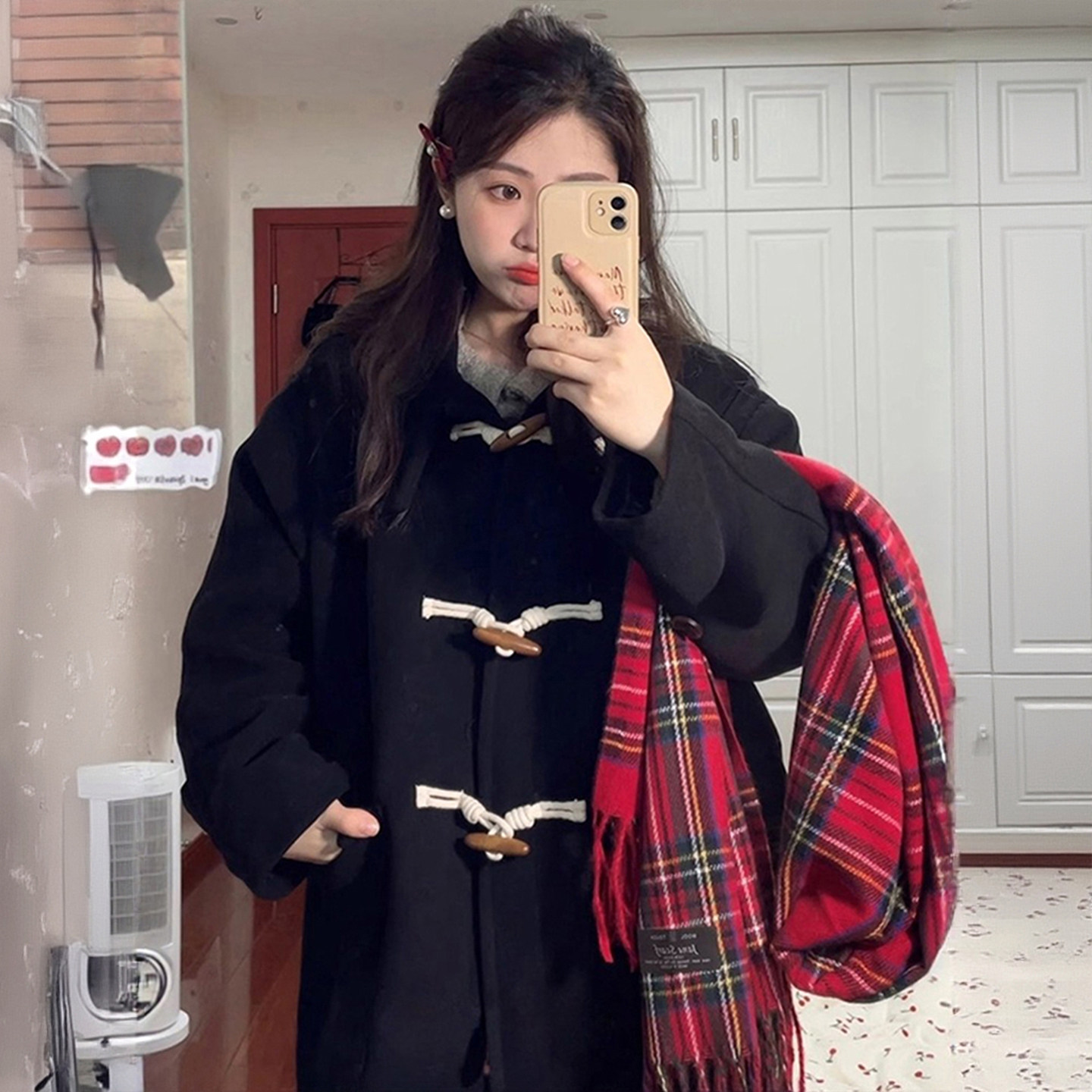 大码女装胖mm黑色宽松高级感毛呢外套女秋冬学院风中长款呢子大衣