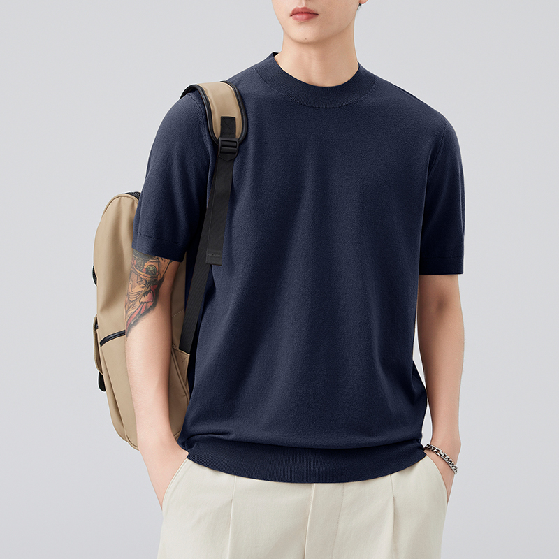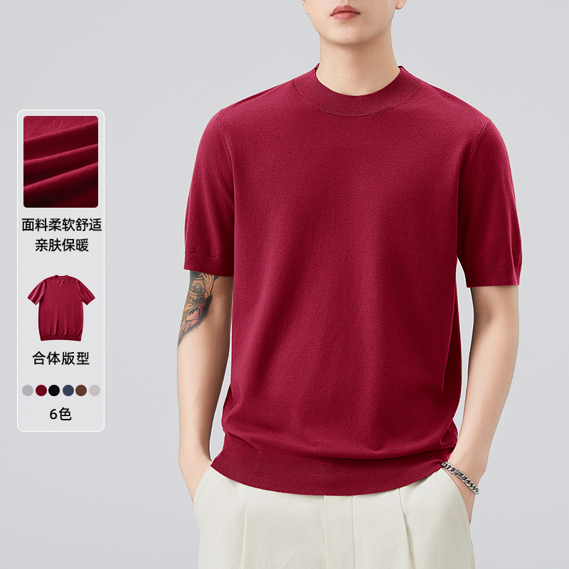半高领短袖毛衣针织衫男春秋冬季潮流修身纯色套头半袖打底衫内搭