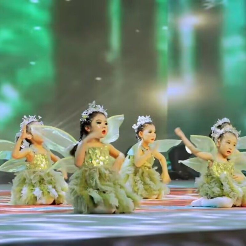 儿童萤火虫闪亮的星舞蹈演出服女童公主蓬蓬裙小精灵花仙子表演服