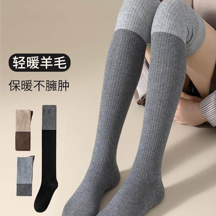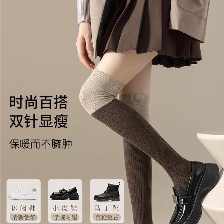 猫人袜子女长筒拼接袜秋冬保暖压力瘦腿防滑羊毛袜2026新款过膝袜