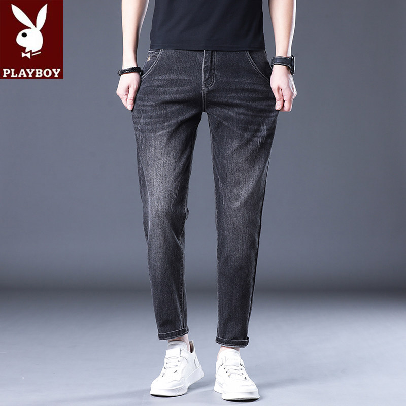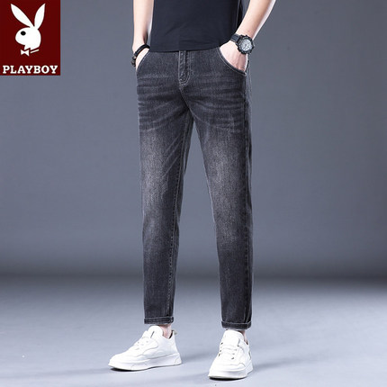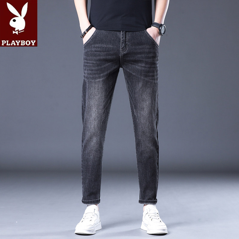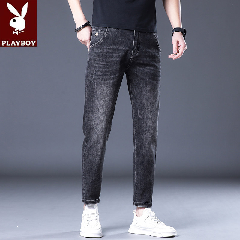花花公子九分牛仔裤新款男士潮牌高端春秋季修身小个子9分小脚裤