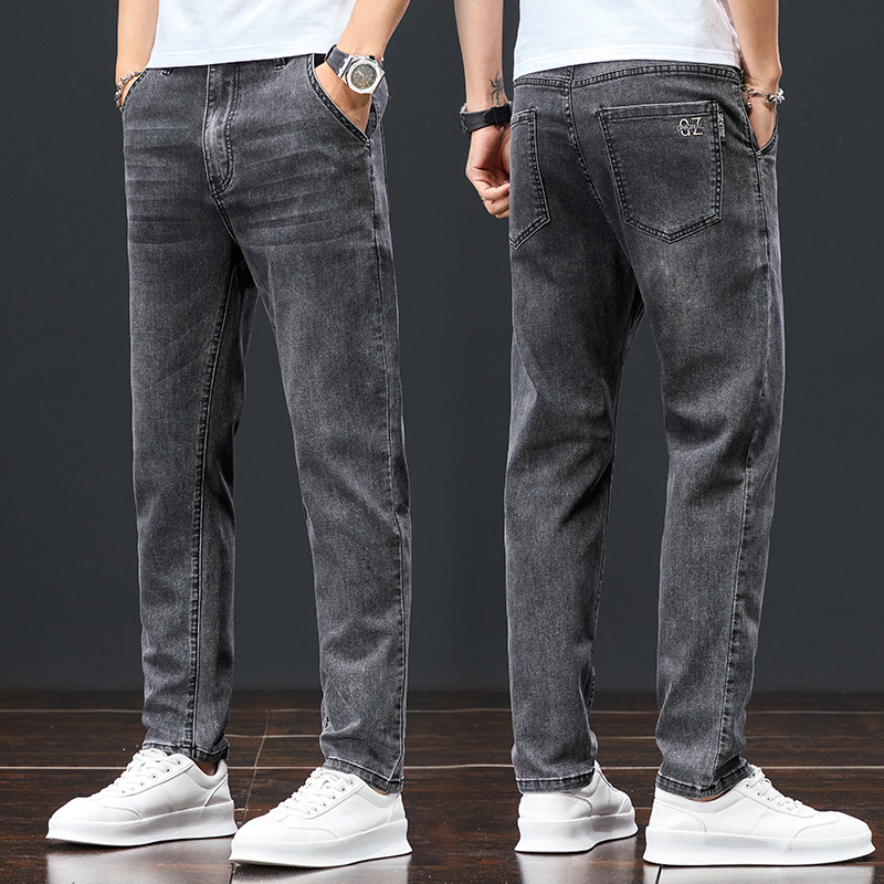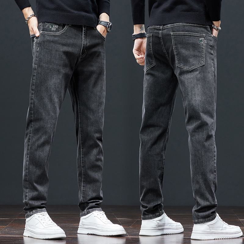 秋季男士裤子深色潮牌新款修身弹力牛仔裤男款春秋款直筒休闲长裤
