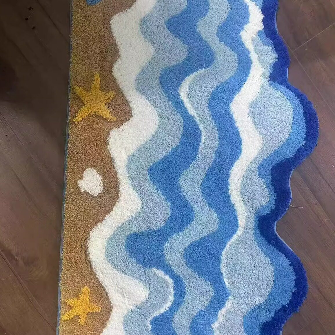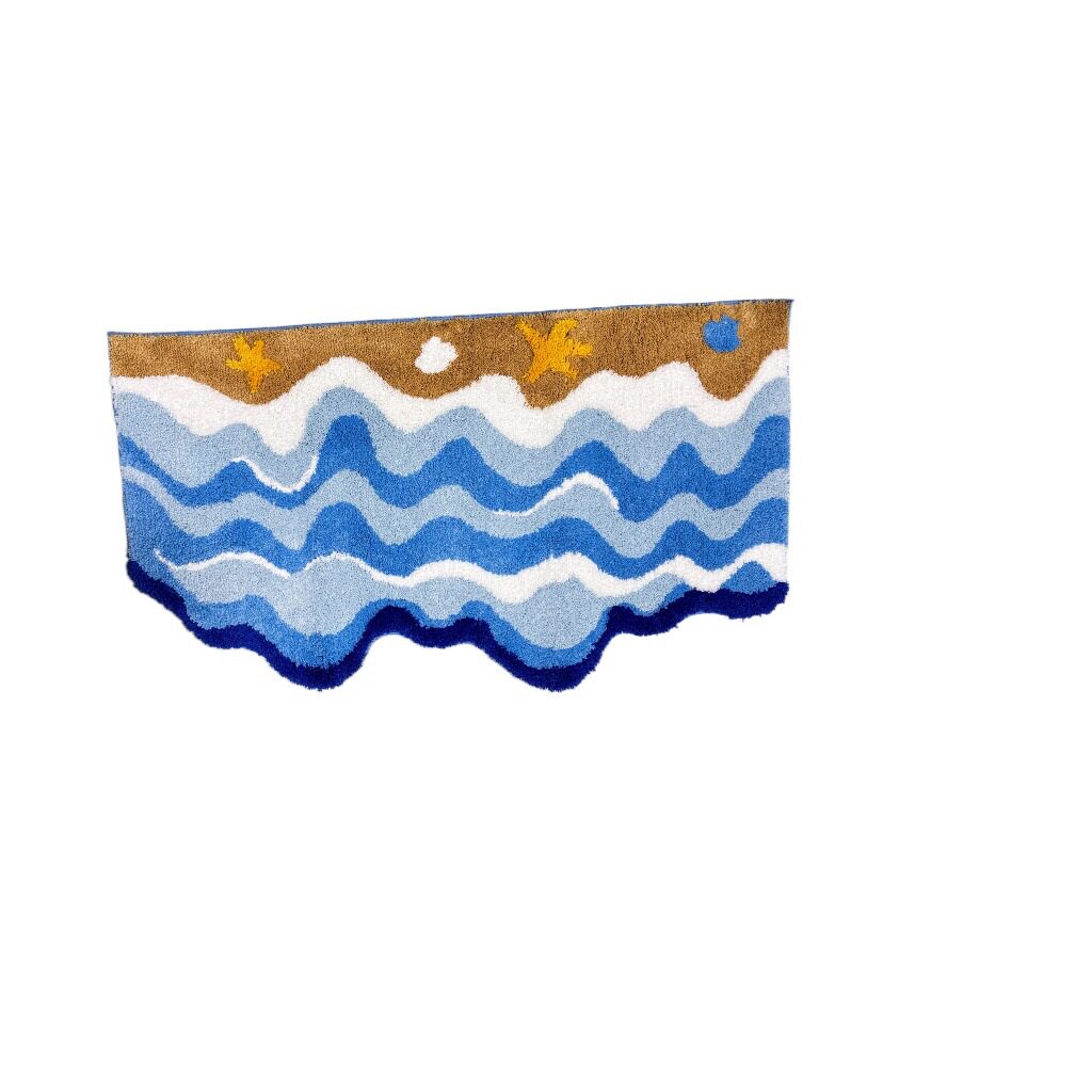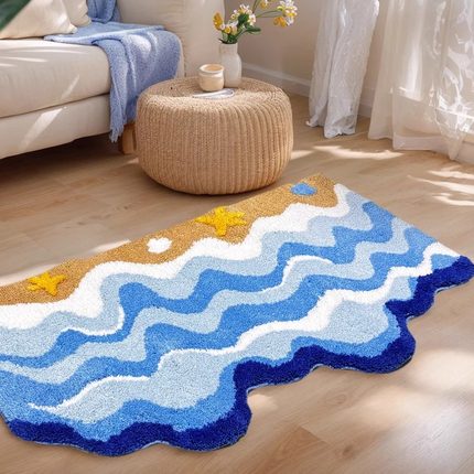 2025新款海浪地毯植绒ins蓝色异形卧室床边毯多巴胺房间客厅地垫