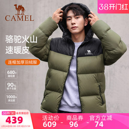 【骆驼火山羽绒服】男装面包服男女冬季黑色加厚保暖鸭绒短款外套