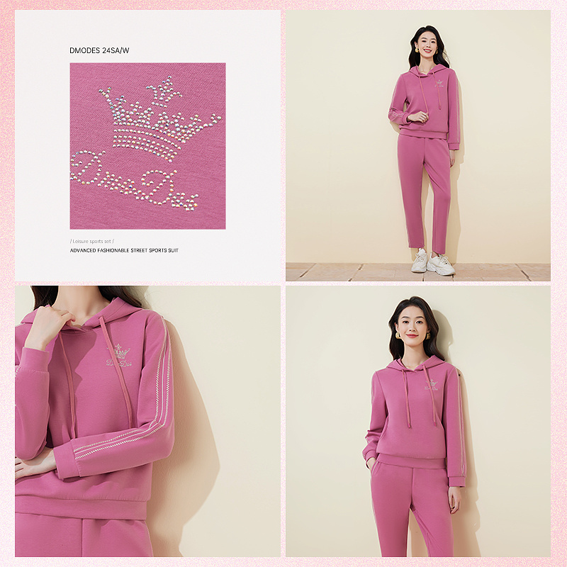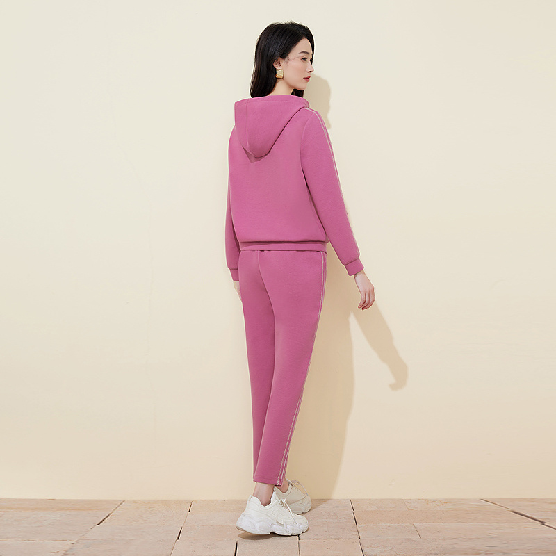 黛玛诗秋新款运动套装宽松时尚连帽卫衣休闲裤两件套女玫红色