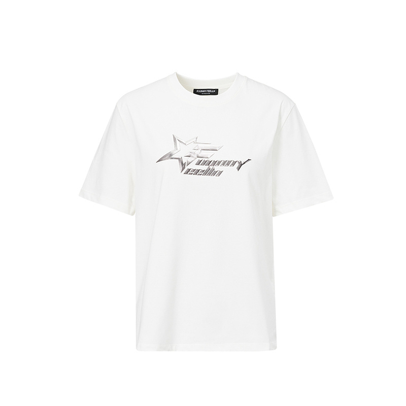 商场同款FF||仿佛2024年春夏短袖T恤女纯棉圆领印花宽松气质